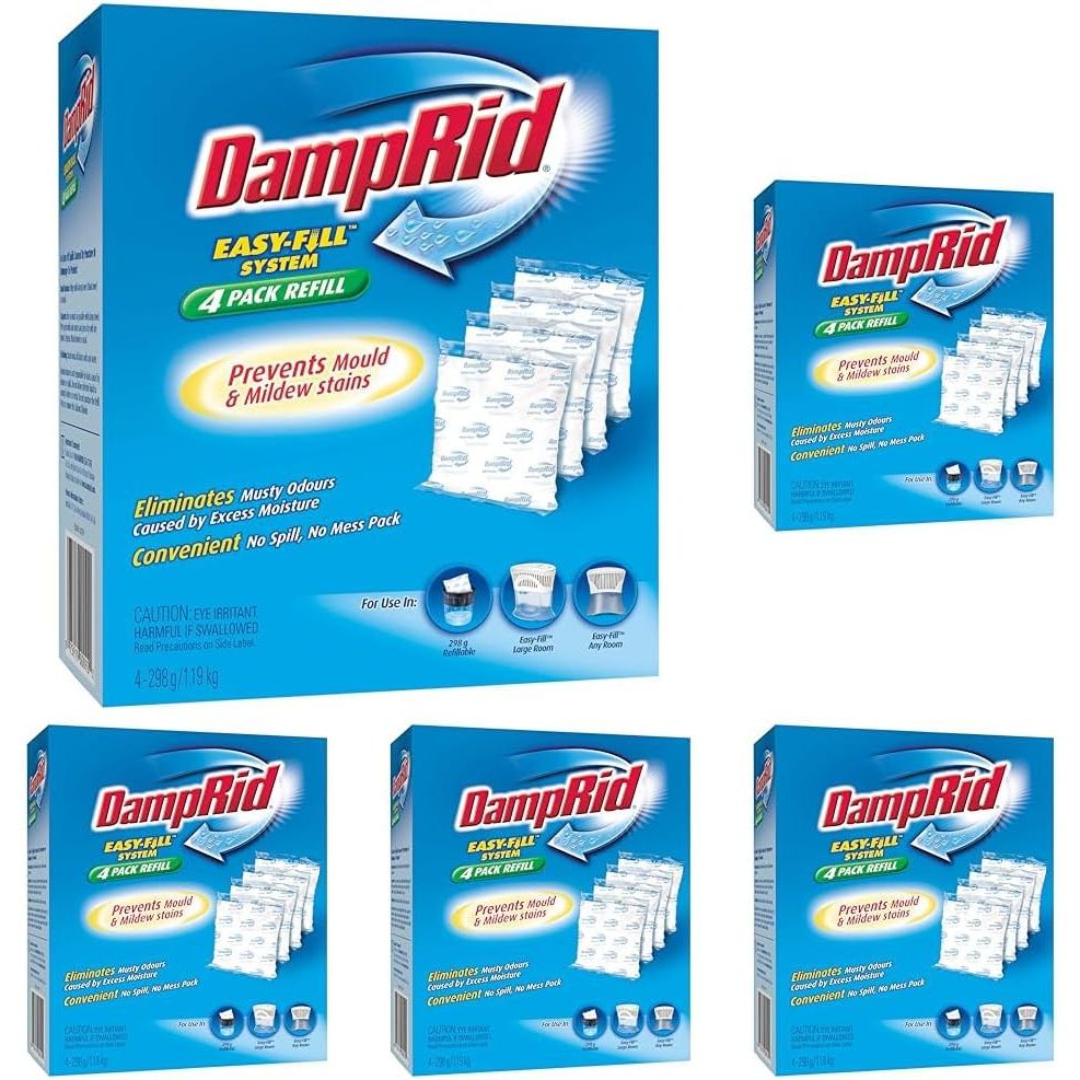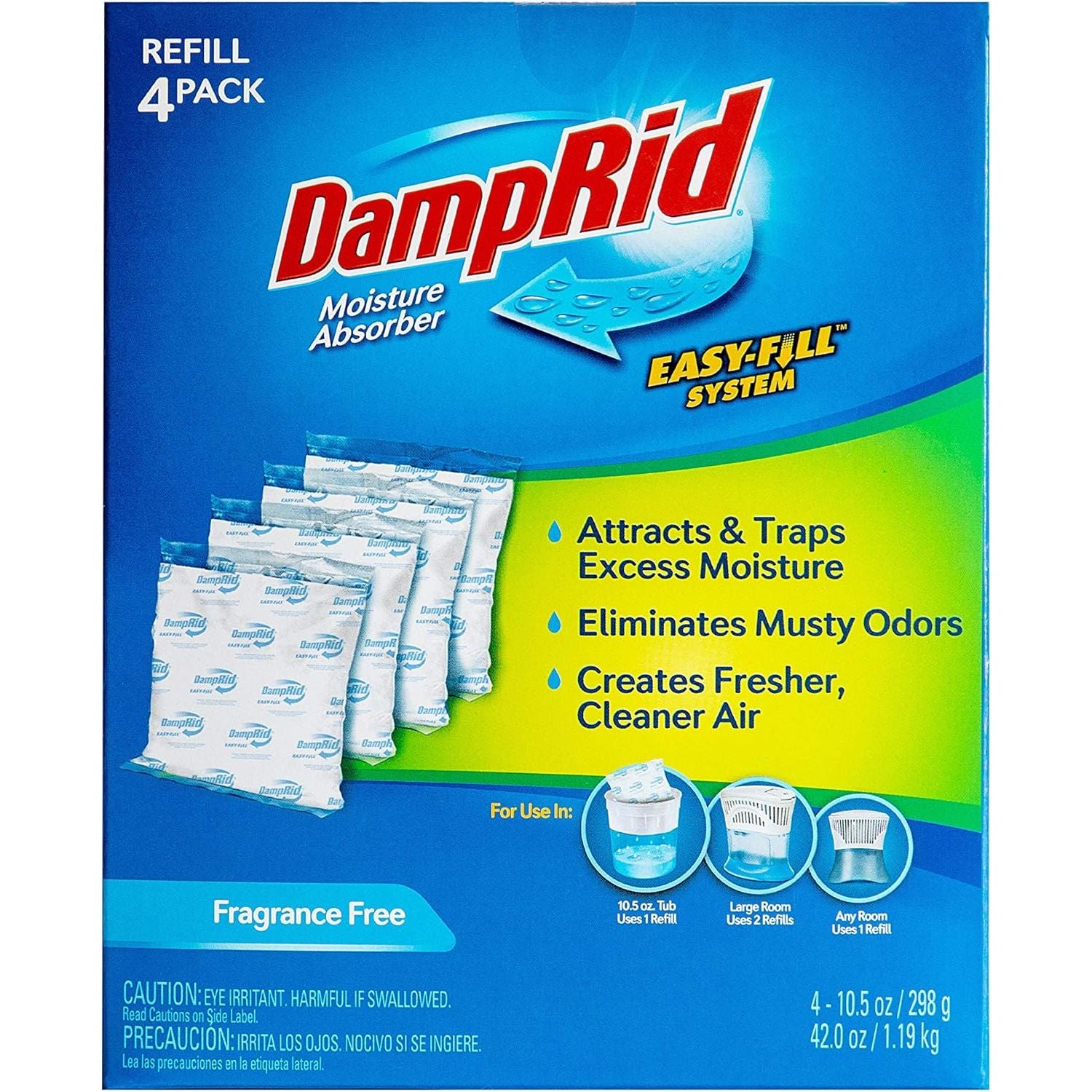 - DampRid 10.5 oz Fragrance Free Absorber Easy Fill Refill Packs-4 Count – Attracts & Traps Moisture for Fresher, Cleaner Air, Blue/White