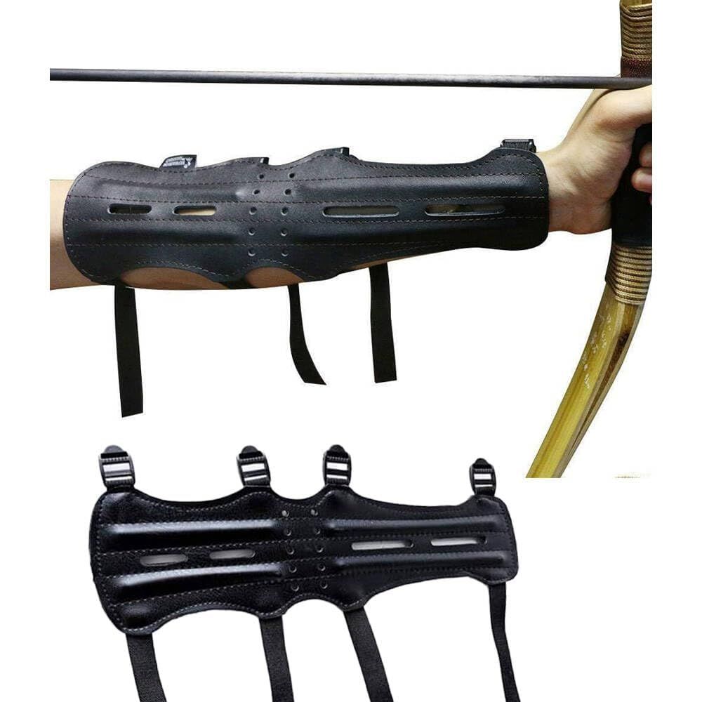 - Archery Leather Arm Guard Long 4 Straps Forearm Protective Gear Hunting Arrow Bow