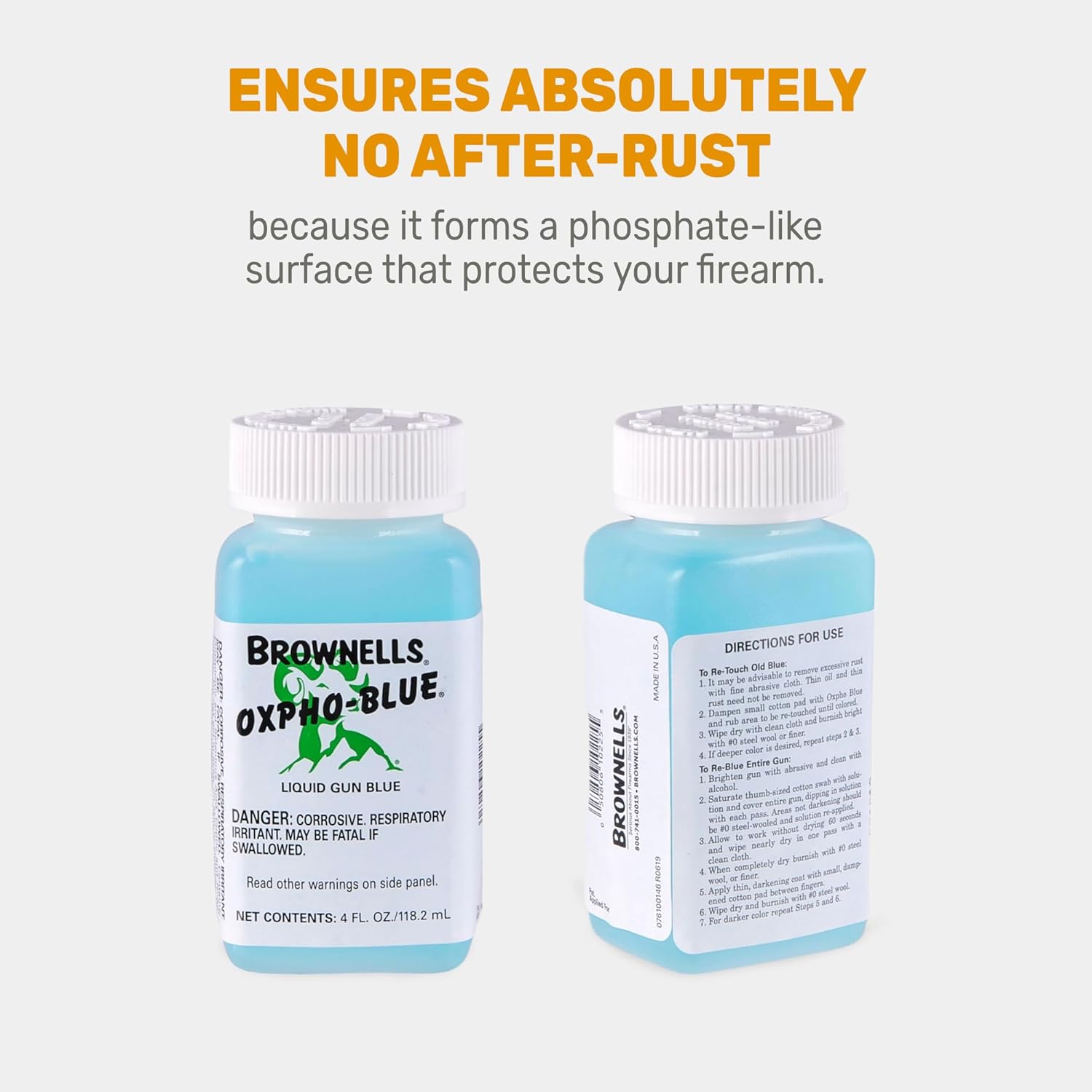- Brownells Oxpho-Blue Liquid Gun Blue, Cold Bluing Solution, Gunsmithing Tools Maintenance Cleaning Supplies, Professional Grade, 4 Fl oz. (118.2 mL)