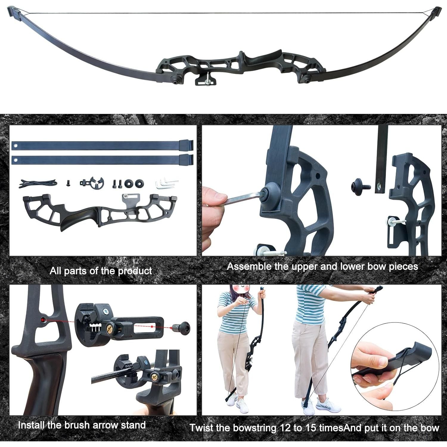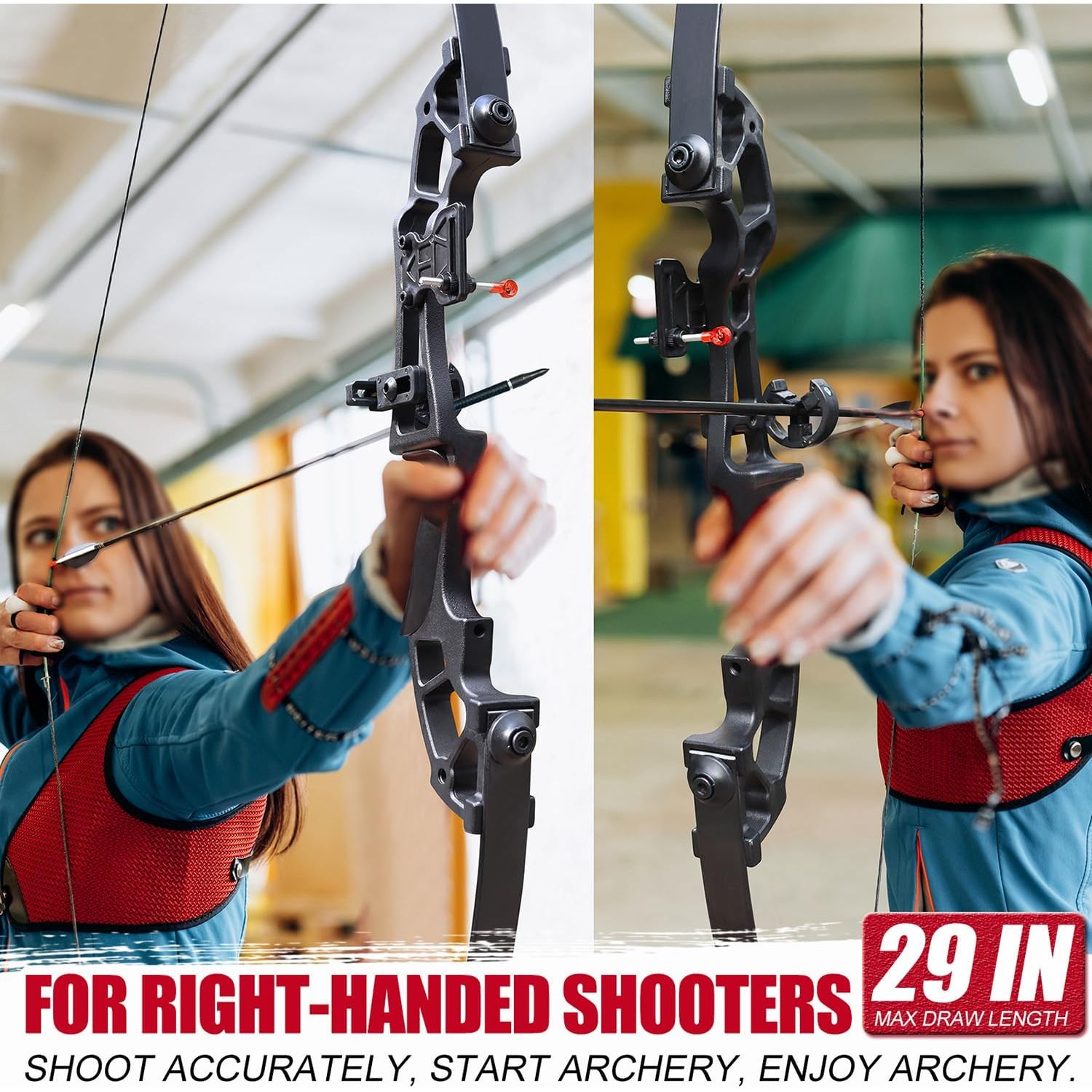 - SIMPLE DESIGN: This recurve bow and arrows set is simple designed for beginner and Professionals, designed for right hand shooters, very easy to assemble and use.