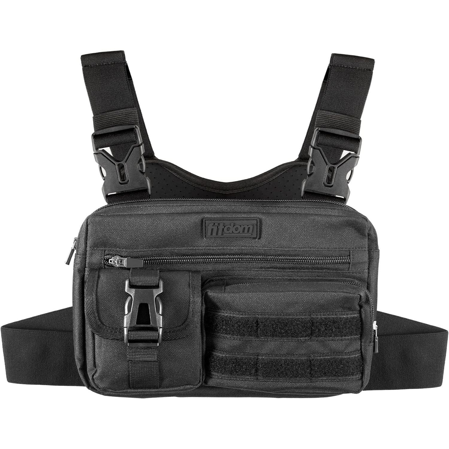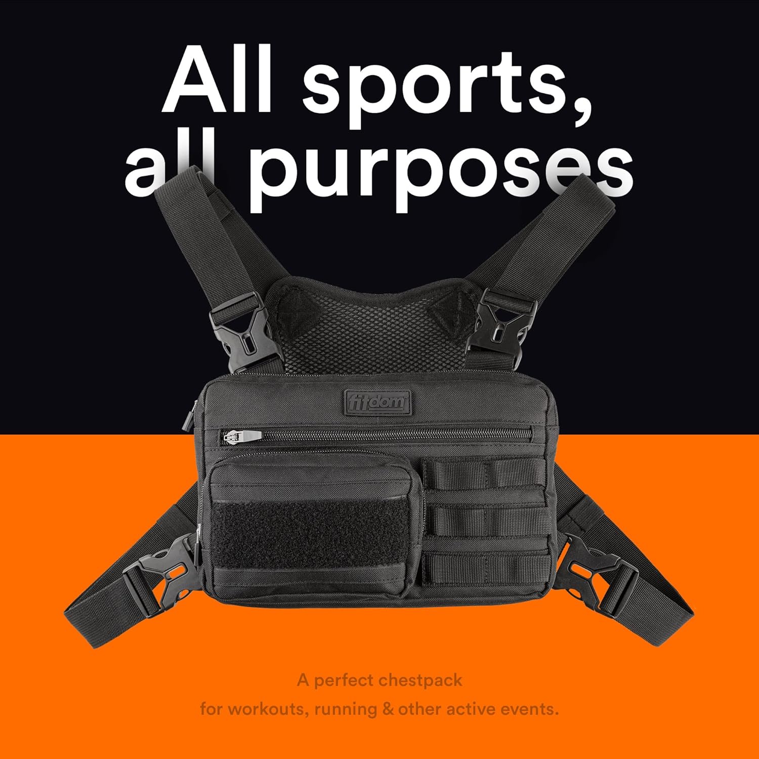 - Fitdom Tactical Inspired Sports Utility Chest Pack. Chest Bag For Men With Built-In Phone Holder. This EDC Rig Pouch Vest is Perfect For Workouts, Cycling & Hiking