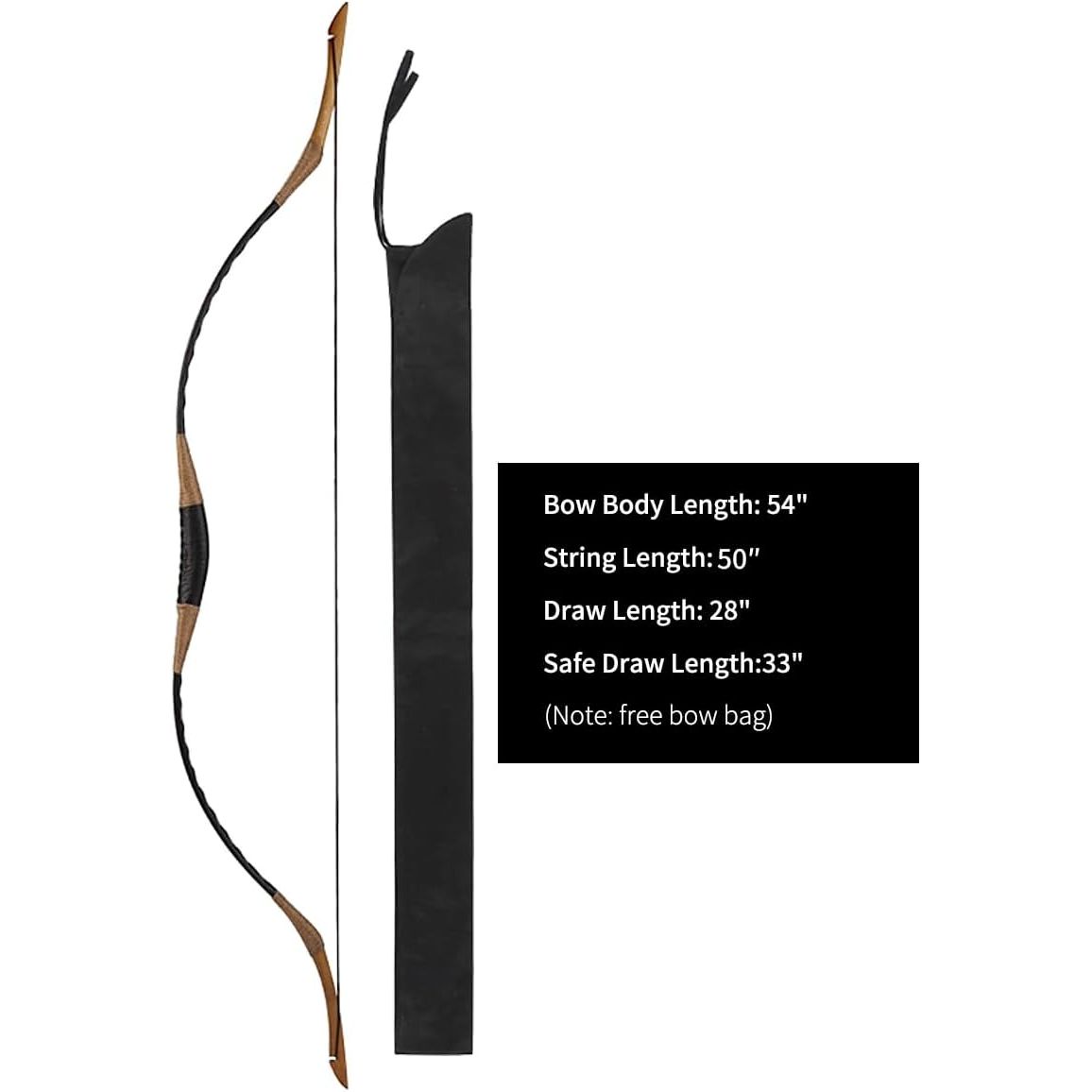 - Bow Body Length: 54" ; String Length:50"; Draw Length: 28" ; Safe Draw Length:33"