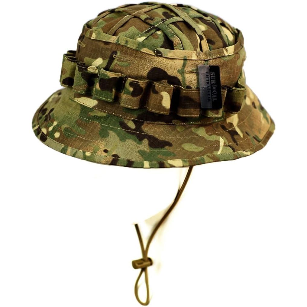 Tech Info: Material: rip-stop 35% cotton / 65% polyester, Size: single (adjustable). The maximum head circumference of 60 centimeters (1.97 ft.) Weight: 0.1 kg. This headpiece is not only protects from sun and rain, but also a means of masking, thanks sewn slings made of fabric, which can be fixed vegetation, additional camouflage devices, camouflage thread. It is equipped with loops for additional camouflage vegetation, an adjustable paracord chin cord in the back part.And inner pocket for map or paper when you are on a trip or wargame Brim masking hat "Scout" tailored in such a way that are smaller in size compared to the typical BOONIE hat, but at the same time wider than the brim of SAS. Around the circumference of the upper part of hat located horizontal ventilation openings.