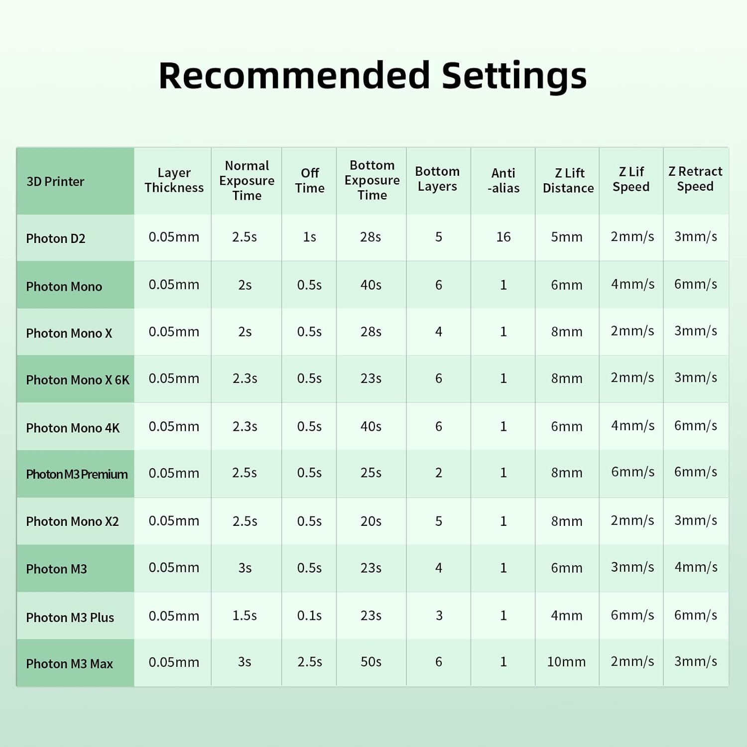 Optimized curing time for Anycubic Photon, offering better printing quality.