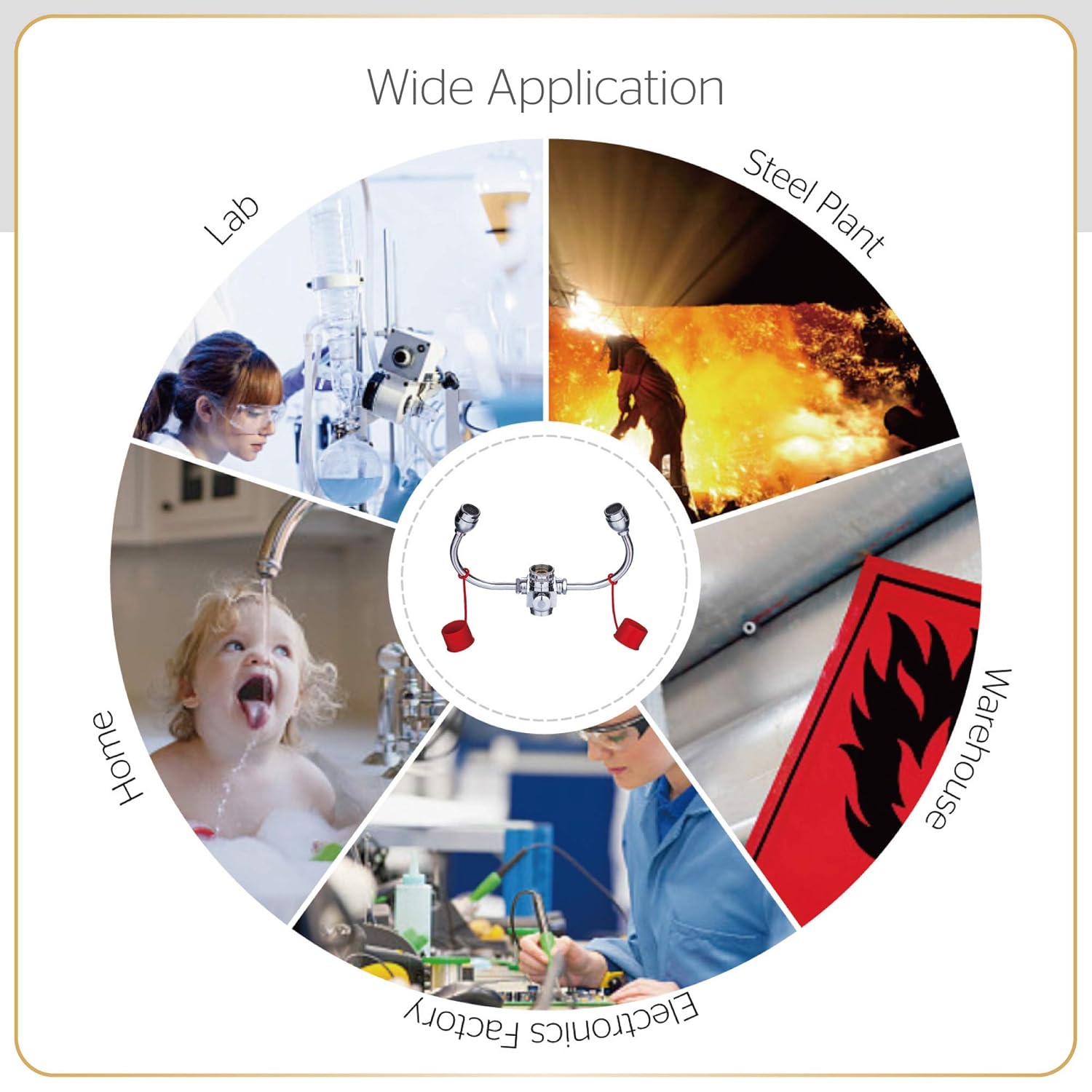 Ideal for industrial sites, labs, small offices, chemical factories and homes for emergency use. No separate plumbing required.