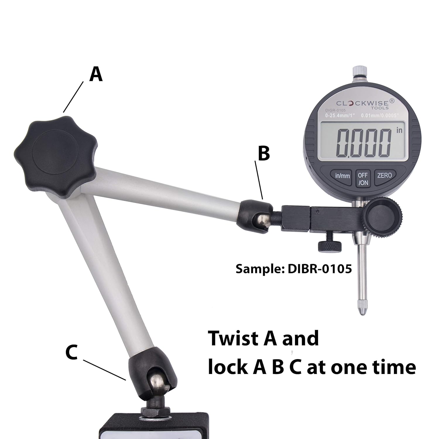 - Clockwise Tools Digital Indicator with Magnetic Base Holder Stand, DIBR-0105 0-1 Inch/25.4mm, Inch/Metric Conversion, Auto Off