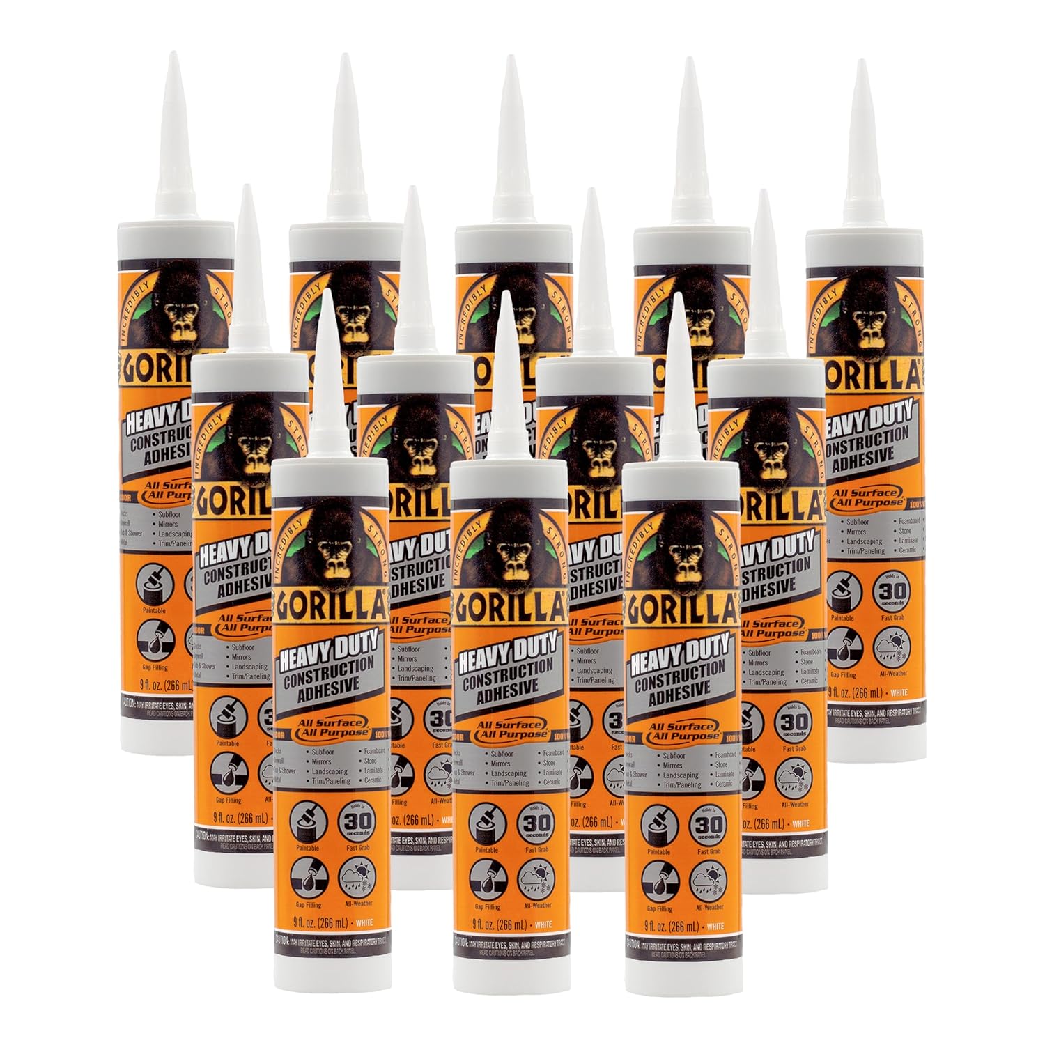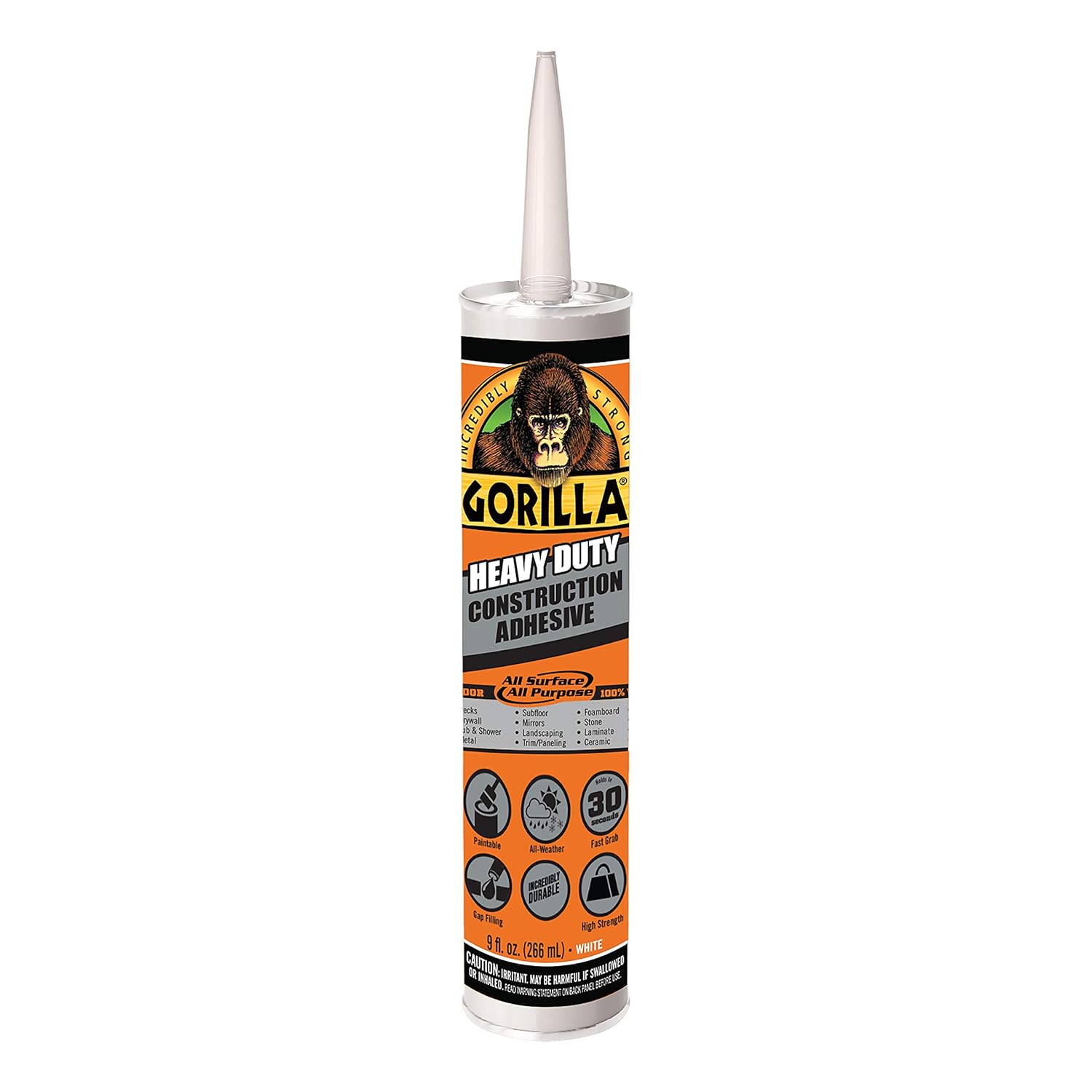 - Gorilla Heavy Duty Construction Adhesive, White Glue, 9 Ounce Cartridge (Pack of 1) - Gap Filling and Waterproof