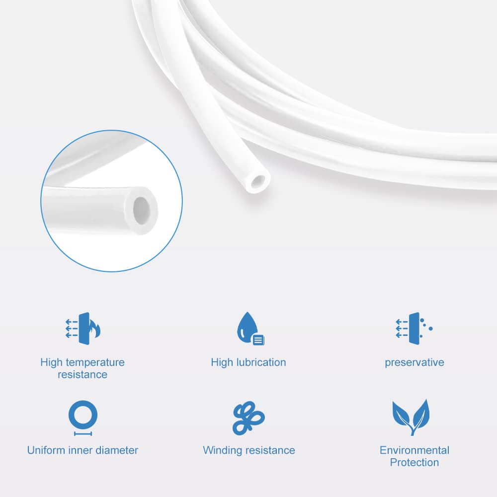 - 【Product Parameter】Teflon tube length: 1 Meter, Inner Diameter: 1.95mm ± 0.05mm , Outer Diameter: 2mm. The optimal inner diameter size is designed to reduce "wiggle room" or flex in the tube, allowing you to print flexible filaments even on the longest Bowden systems.
