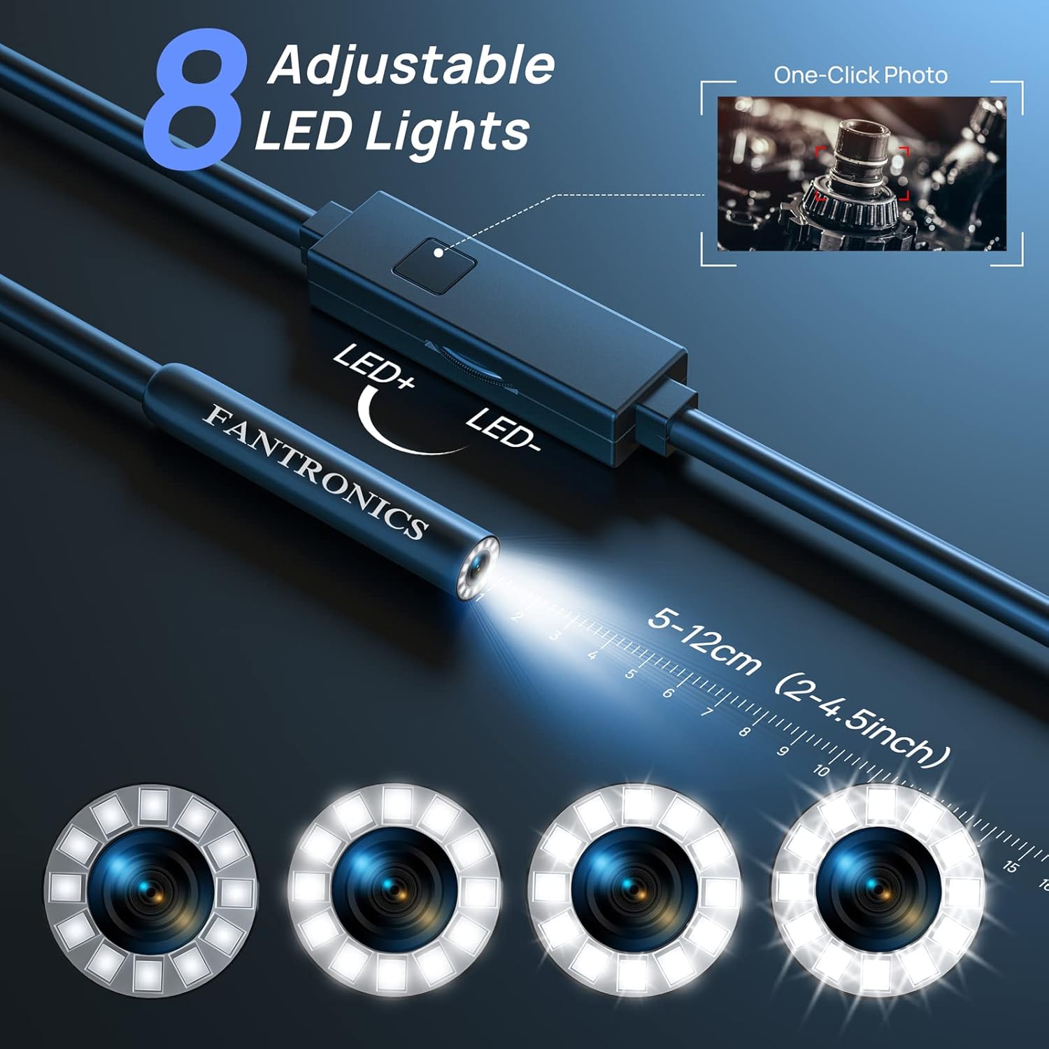 - USB Snake Inspection Camera, FANTRONICS Scope Camera with 8 LED Lights IP67 Waterproof Semi-Rigid Snake Cord USB C Borescope for iPhone, iPad and Android Phone (16.4ft)
