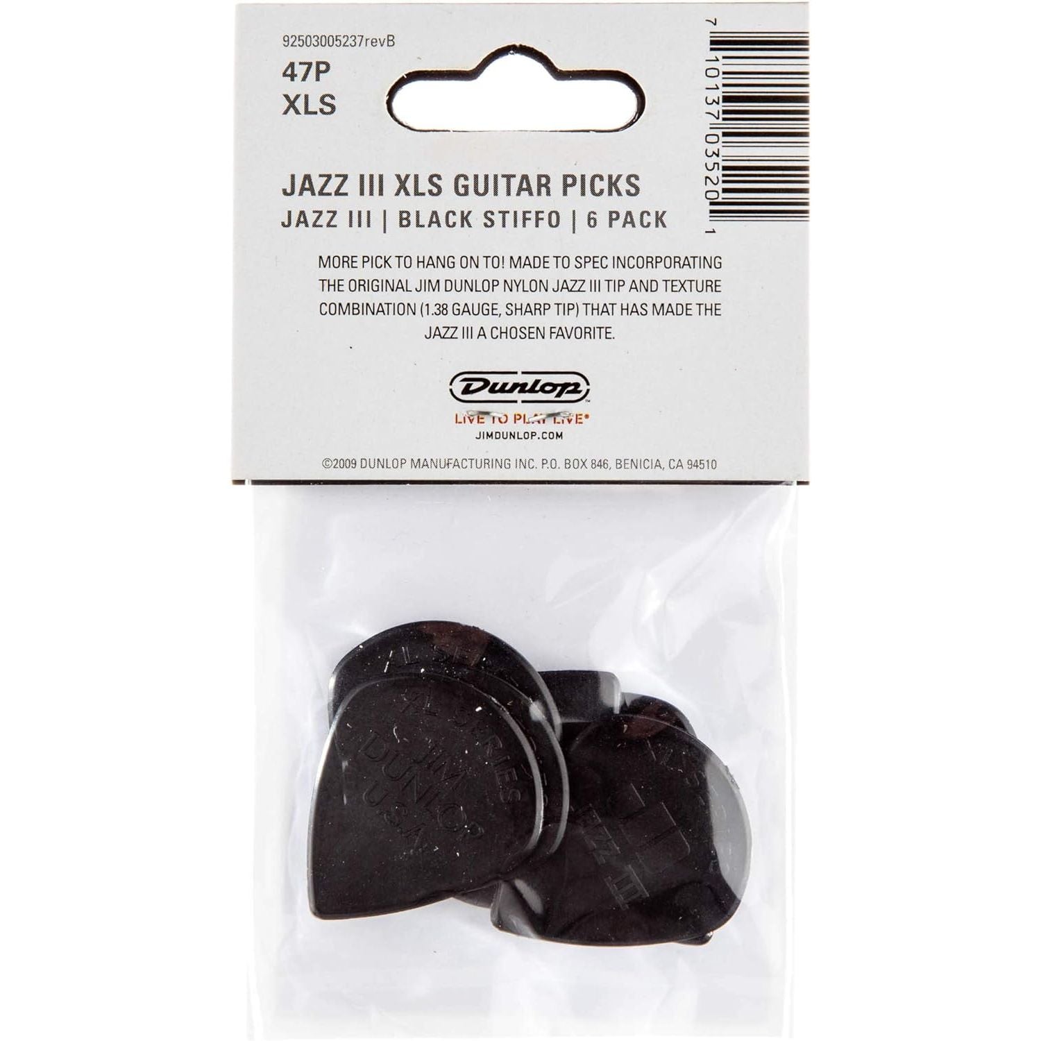- Jim Dunlop Jazz III XL Stiffo Pick 1.38MM - 6 Pack