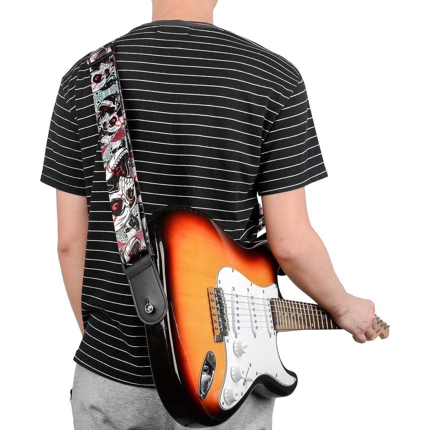 Skull Guitar Strap Leather Ends Guitar Shoulder Strap for Bass, Electric, Acoustic Guitars, Best Gift for Men Women Guitarist
