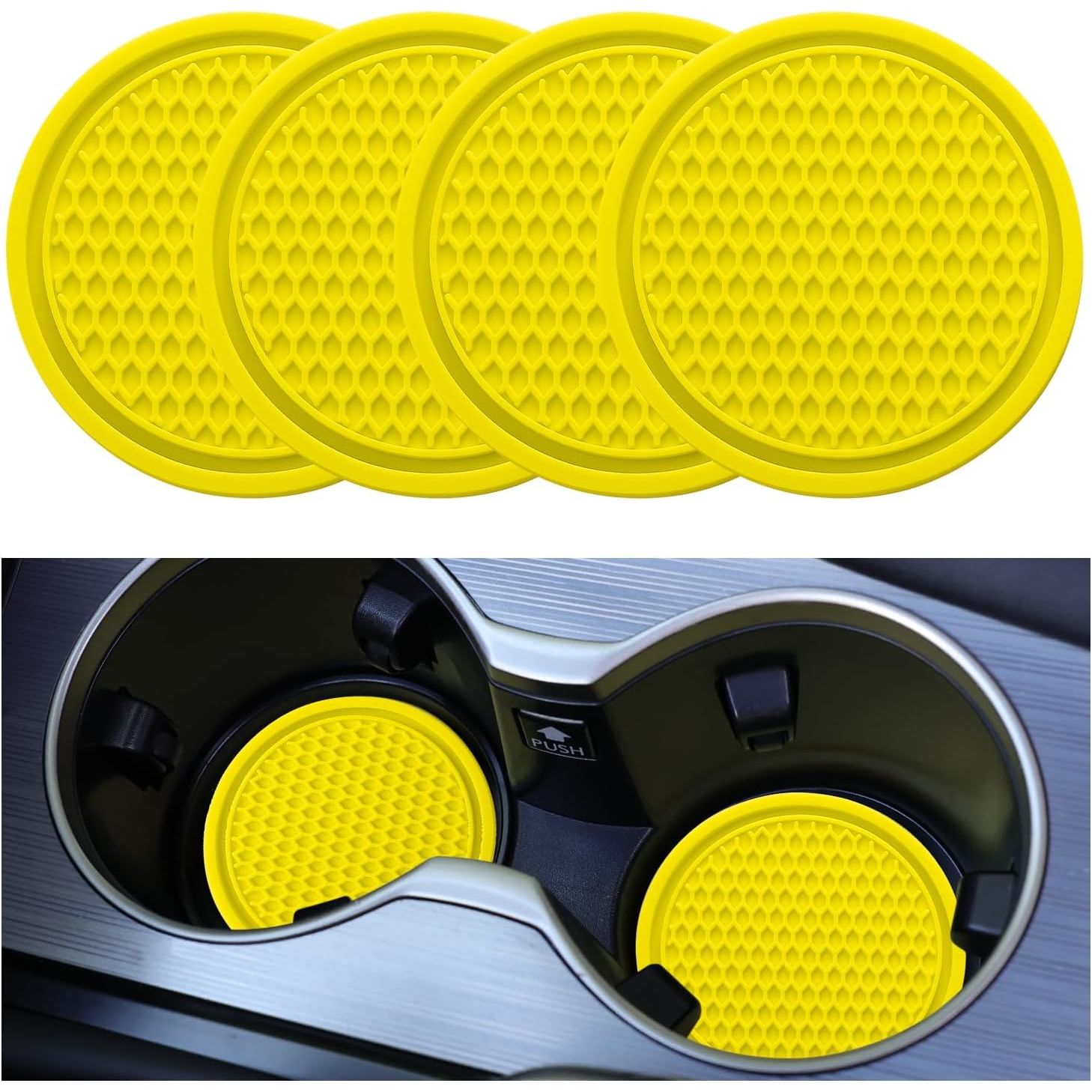 - Car Cup Coaster, 4PCS Universal Non-Slip Cup Holders Embedded in Ornaments Coaster, Car Interior Accessories, Black