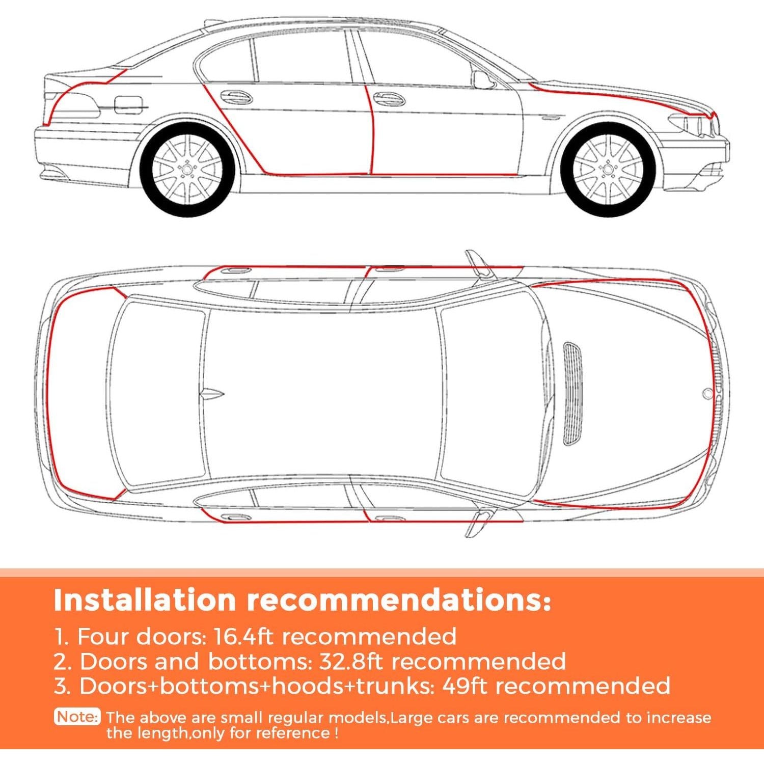 - 【Easy to Install】Suitable for car doors, car bottoms, bonnet and trunk cover. It won't damage the door! UNIVERSAL FIT!Just push on the car door edge guard above the install place.Could be installed in 15 minutes, much easier if you tap lightly with rubber mallet(not included).Attention to truck/van owners, please ensure your door edge thickness prior to purchase.