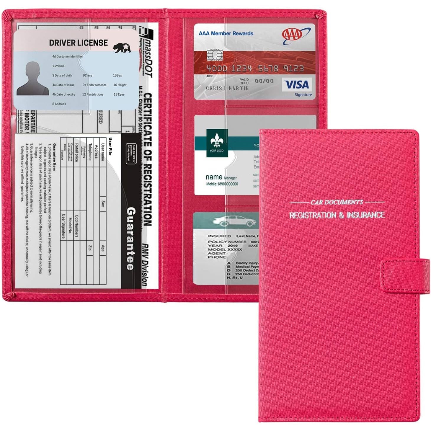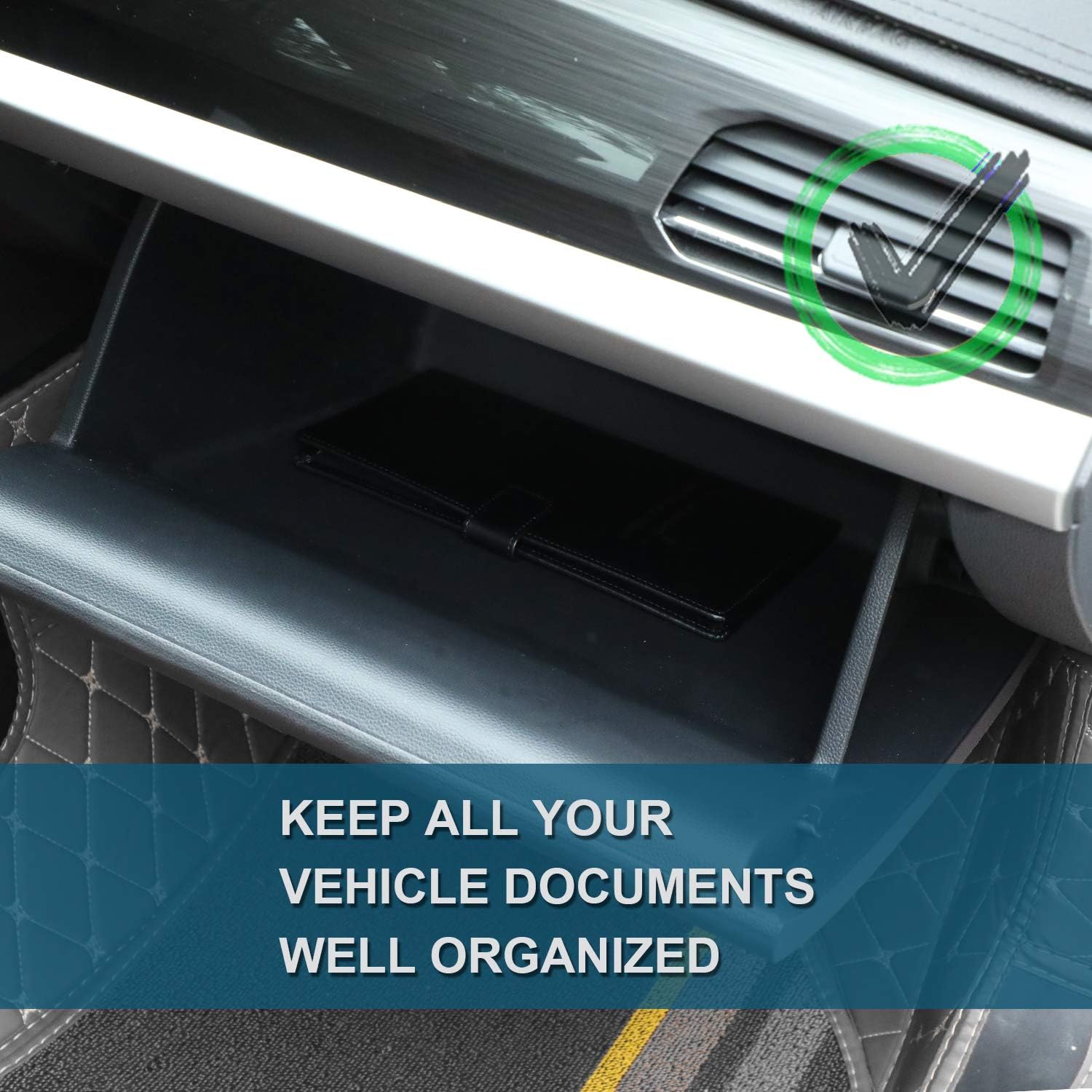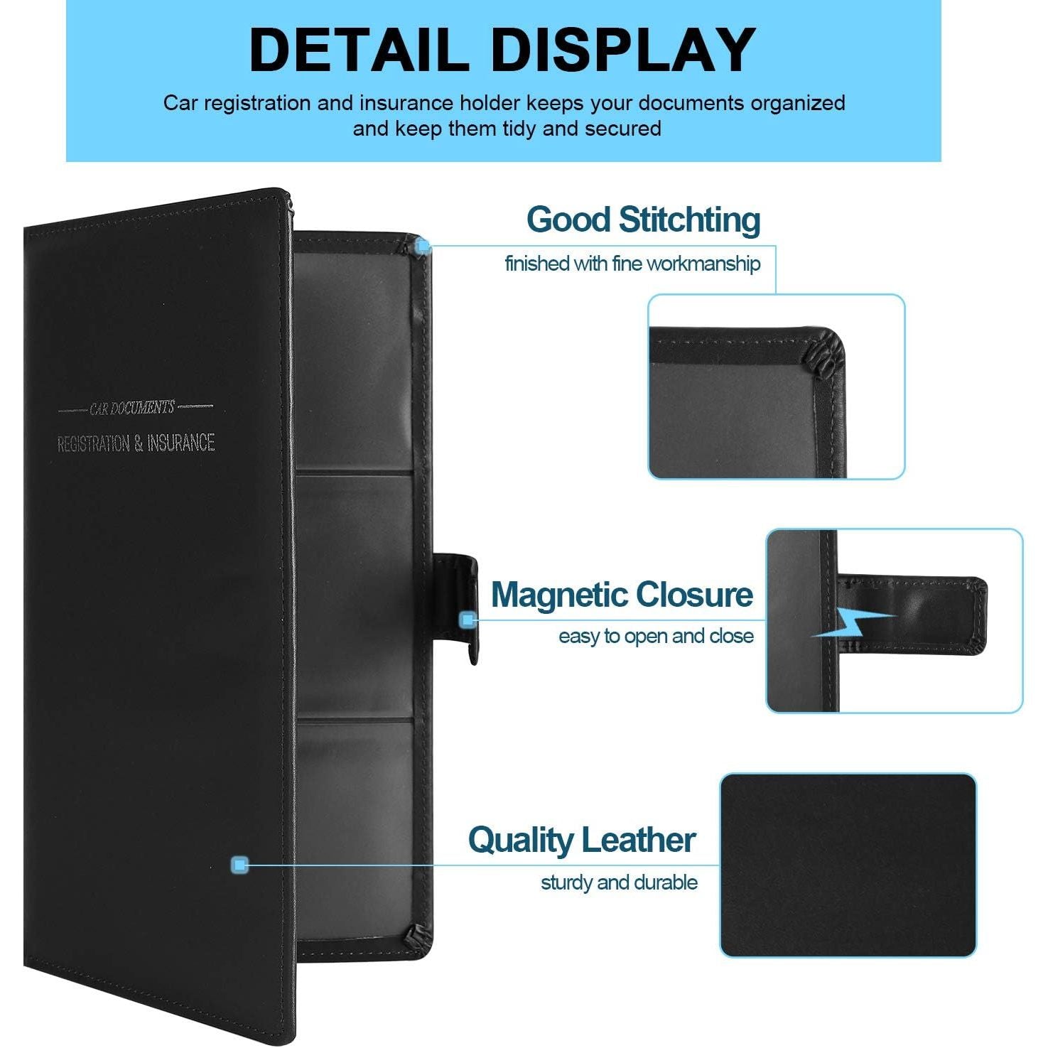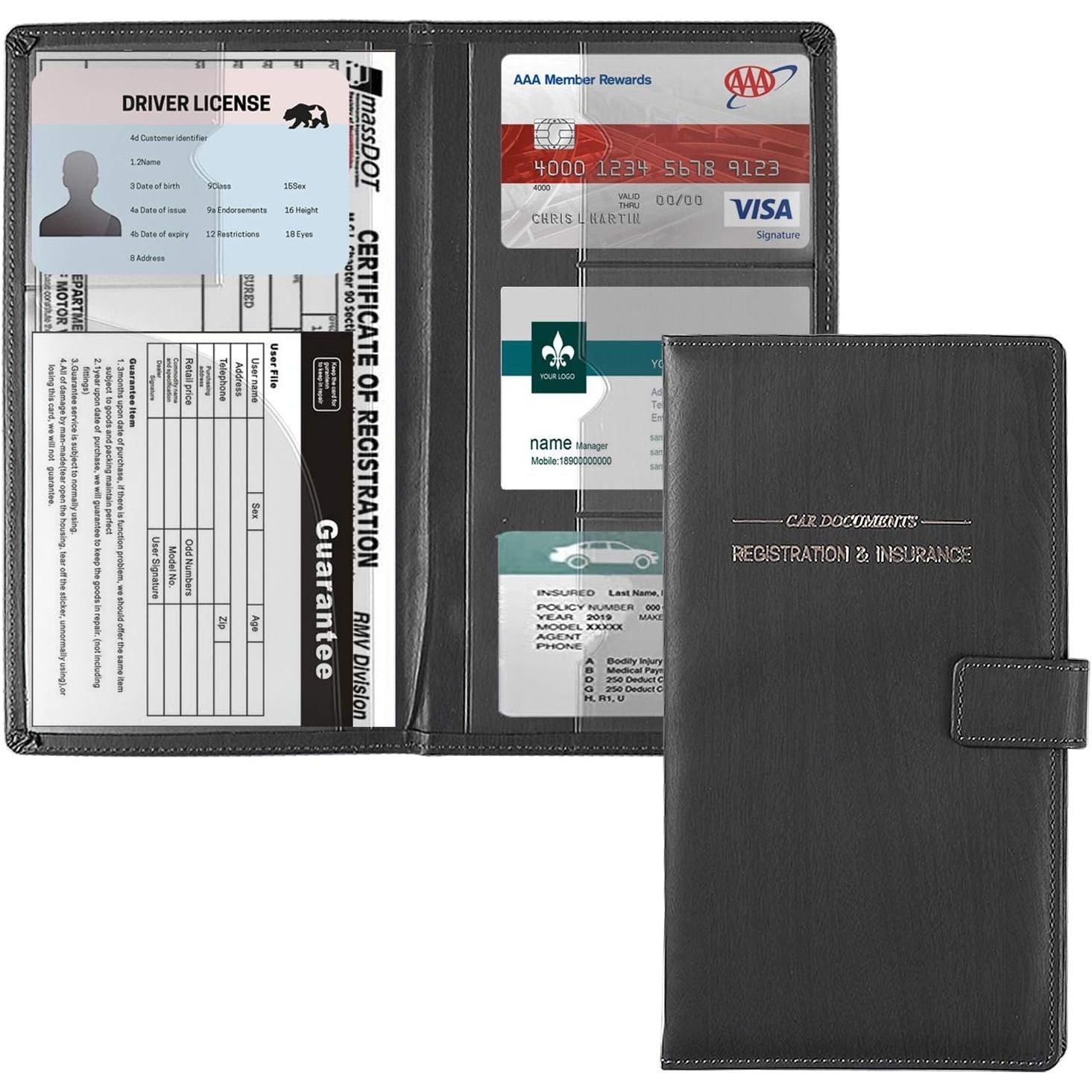 - Document Assistant: Car registration and insurance holder keeps your documents organized and keep them tidy and secured. The clear PVC inner sleeves make it easy to find the documents or cards you need.