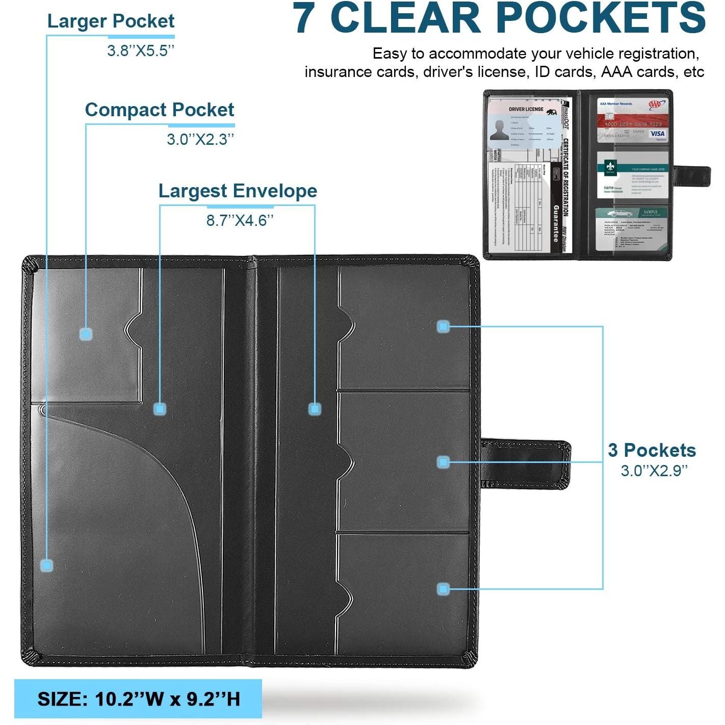 - Enough Space: This registration and insurance card holder features 7 transparent pockets, easy to accommodate your vehicle registration, insurance cards, driver's license, ID cards, AAA cards, fuel cards, business cards, receipt, key contact information cards, etc.