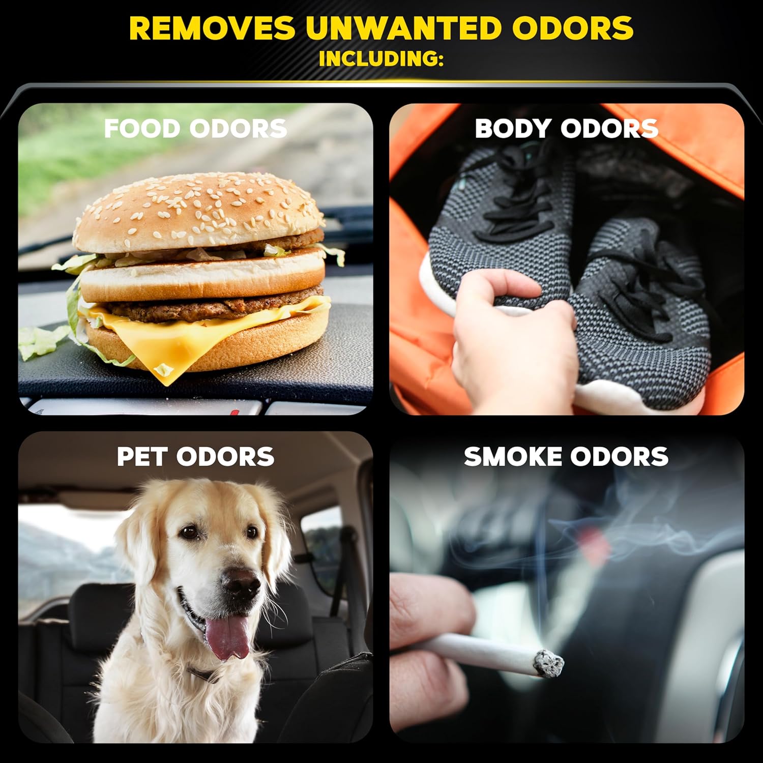 - WHOLE CAR AIR REFRESHER: This convenient car air freshener mist combats strong vehicle odours while infusing your cabin with a refreshing and pleasant new car scent. It works great at fighting smells like cigarette smoke, food odors, workout gear and more