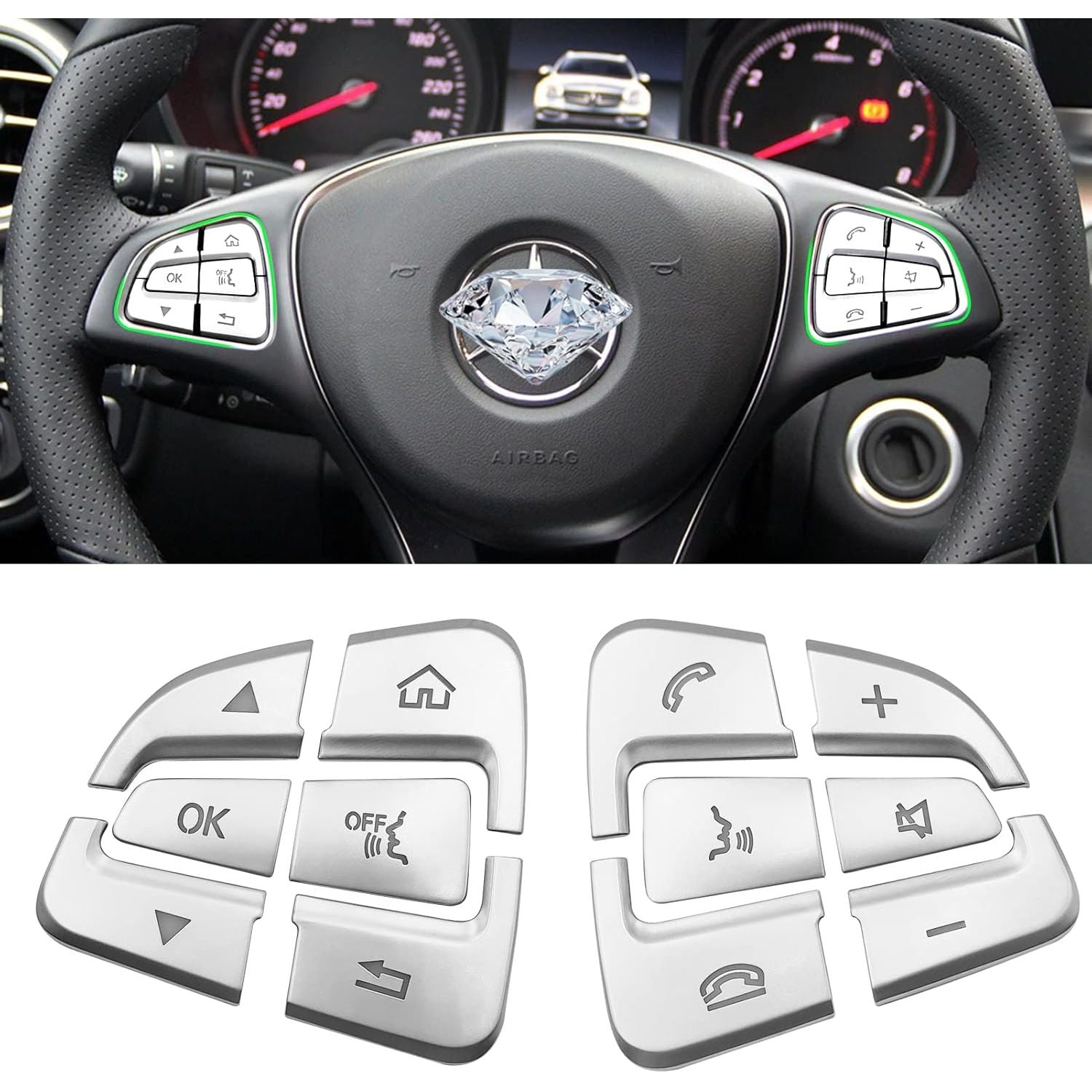 - Moonlinks Steering Wheel Button Covers Trim Stickers Compatible with Mercedes Benz A B GLA CLA GLS GLE CLS SL Class,Steering Wheel Button lnner Decoration Sticker 12PCS,Chromed-Silver(Model B)