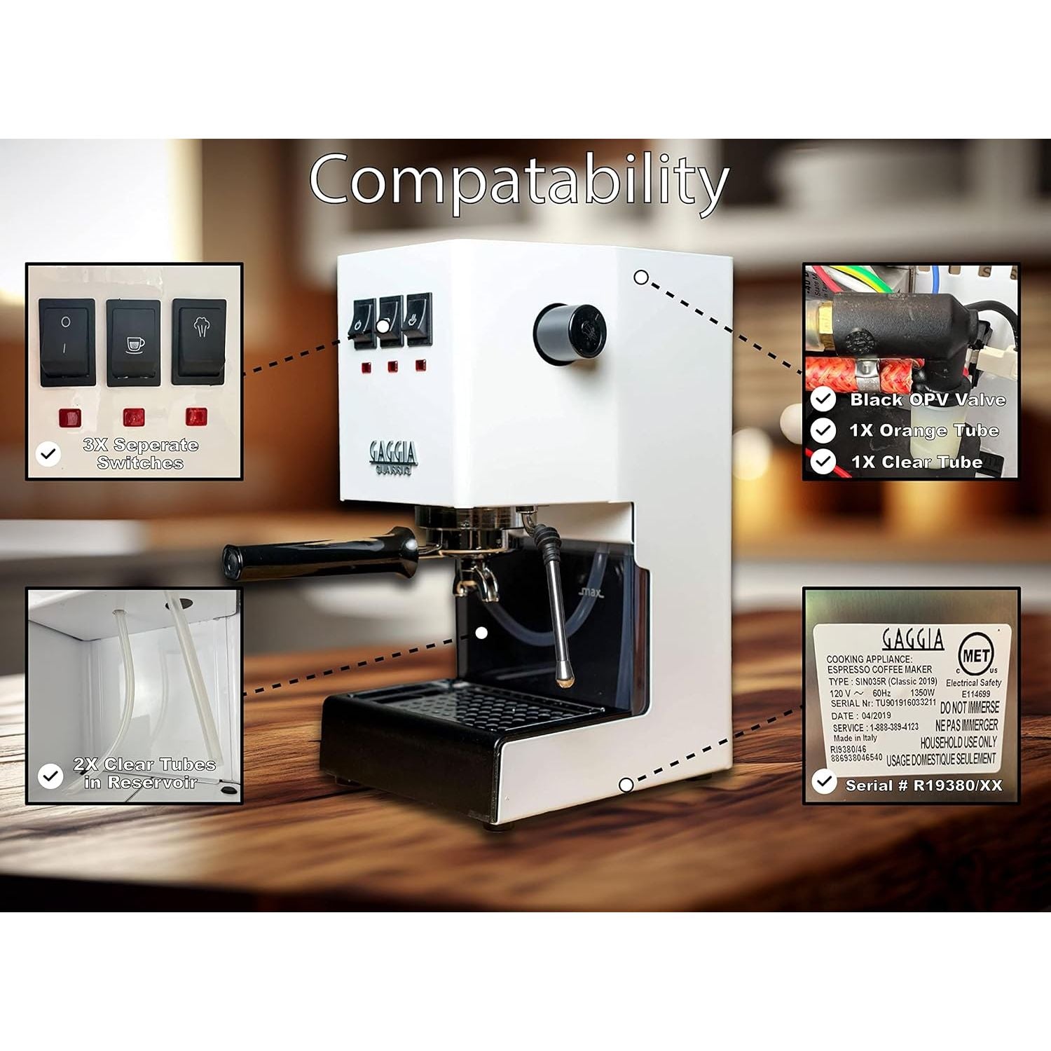 Introducing the Distro Coffee Labs OPV (Over Pressure Valve) modification kit compatible with newer Gaggia Classic Machines (2018 and newer). Designed to upgrade and enhance the performance of your espresso machine to the industry standard 9 Bar pressure. For those wishing to experiment and extract at a lower pressure, a 6 Bar modification spring is included as well. These high-quality springs are made with 304 Stainless Steel and take only a few minutes to install. Simply remove the top cover and replace the existing 13 Bar spring with either the 9 Bar or 6 Bar spring to enjoy an improved and more efficient espresso-making experience. Our Springs are designed to optimize the pressure, ensuring that each shot is perfectly extracted and full of rich, bold flavor. Whether you're a coffee connoisseur or just looking to get the most out of your espresso machine, this OPV modification kit is and easy to install must-have addition to your setup. Upgrade your machine today and experience the difference for yourself! Compatible with Models RI9380 Classic Pro 2018,2019,2020,2021 Please check your machine has the new black OPV valve with two silicone hoses going into the tank.