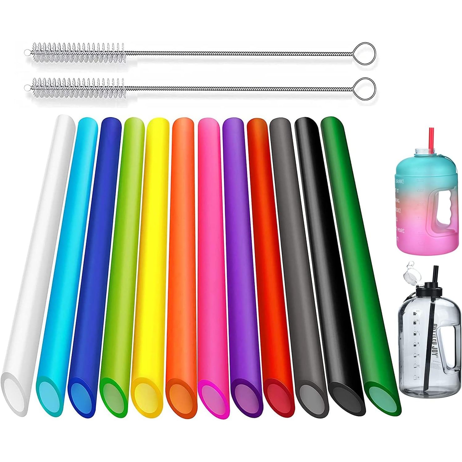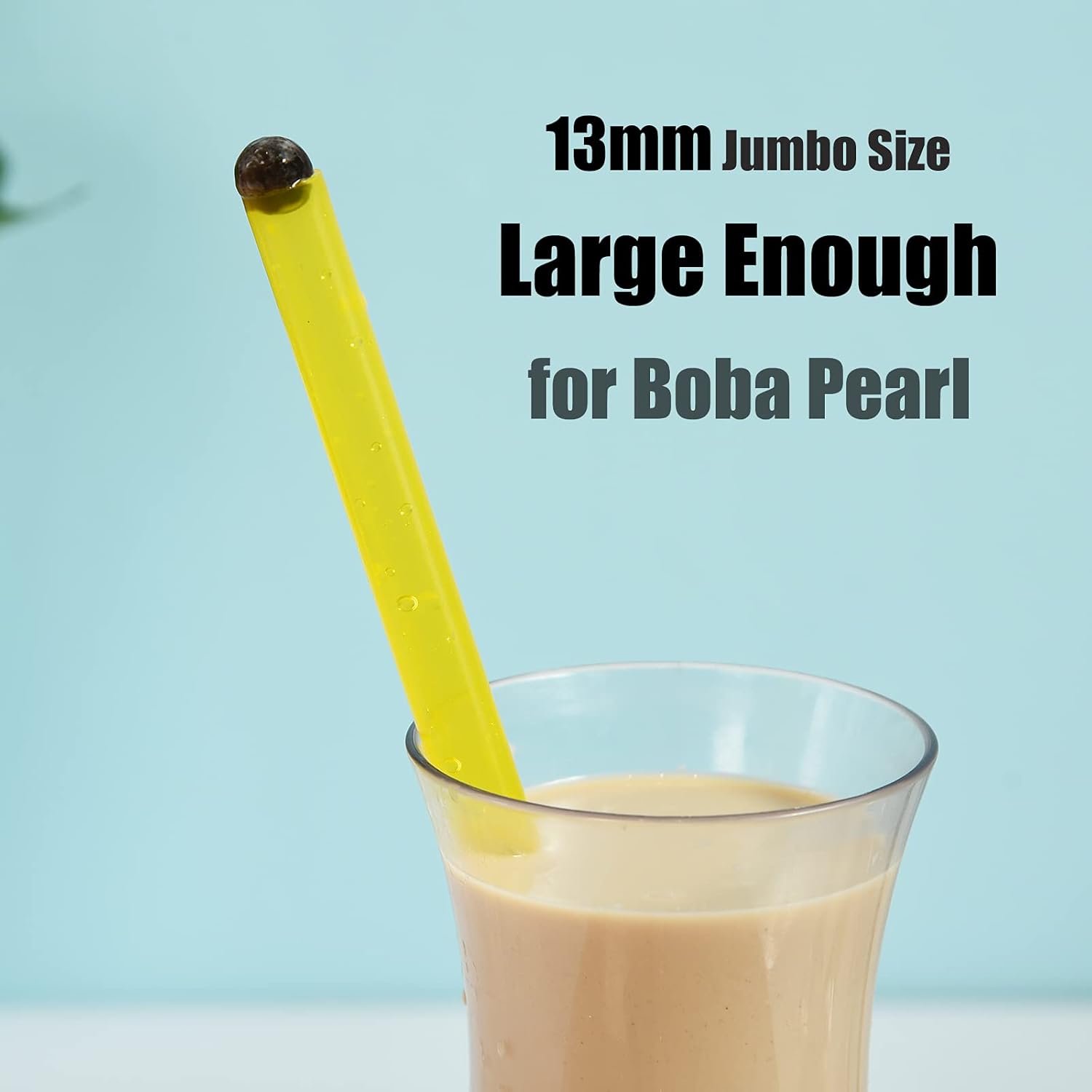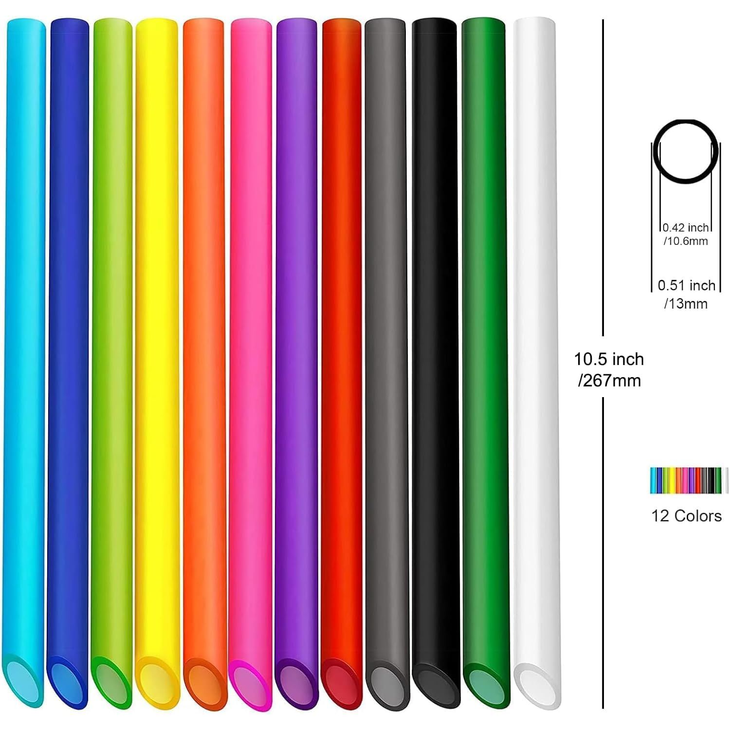 - PERFECT SIZE FOR BOBA SMOOTHIES - 12 pcs multi-colors straws + 2 cleaning brushes. 10.5" long and 0.42 Inner Diameter 0.51 Outside Diameter, 2 9-inch 12mm cleaning brush, great ideal size for fat boba bubble tea (tapioca pearls, boba pearls), frozen smoothies, thick milkshakes, jelly, jumbo drinks and more homemade thick drinks