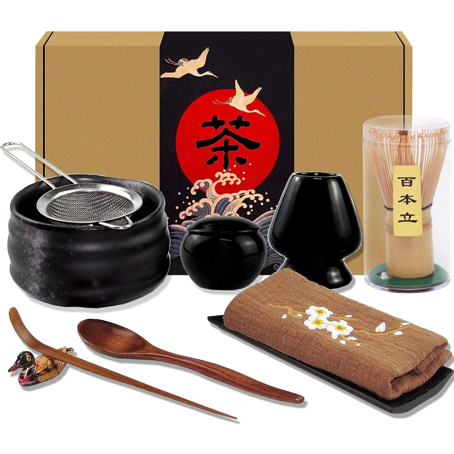 - Artcome 10Pcs Japanese Matcha Tea Set, Matcha Bowl, Matcha Whisk, Whisk Holder, Traditional Scoop, Tea Spoon, Tea Cloth, Bamboo Holder, Scoop Holder, Matcha Powder Caddy, Matcha Powder Strainer(Black)