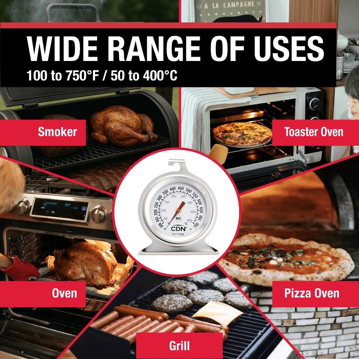 - CDN High Heat Oven Thermometer | ProAccurate® | NSF Certified | 100-750°F Range | For Broiling, Roasting, High-Temp Cooking | Lab Glass Lens | POT750X