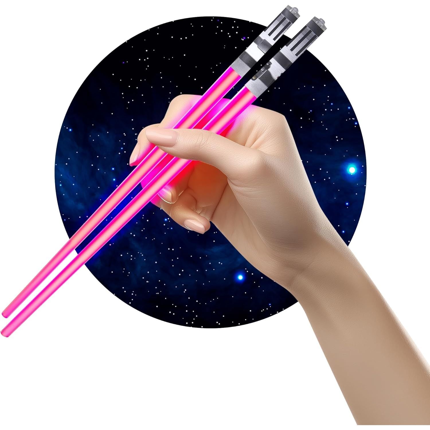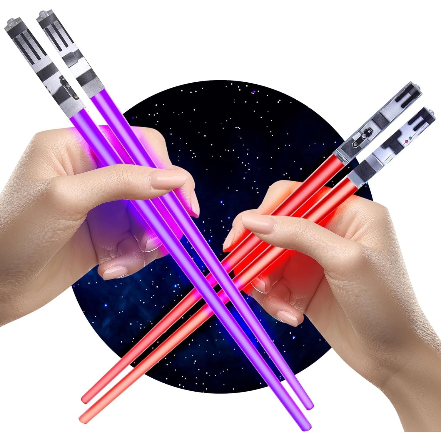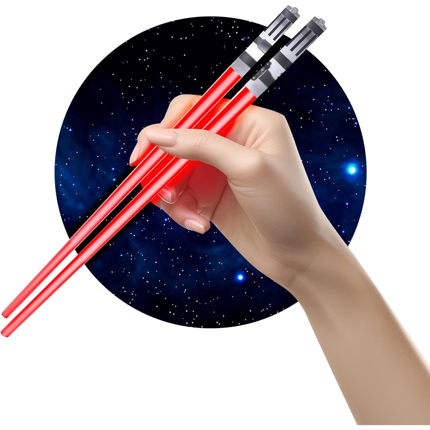 - ⭐ MAY THE DELICIOUS FOOD BE WITH YOU: Wage colorful wars your sushi, noodles, Japanese, Chinese, Thai or Vietnamese food with your light-up chopsticks, which feature bright red and blue LED's.