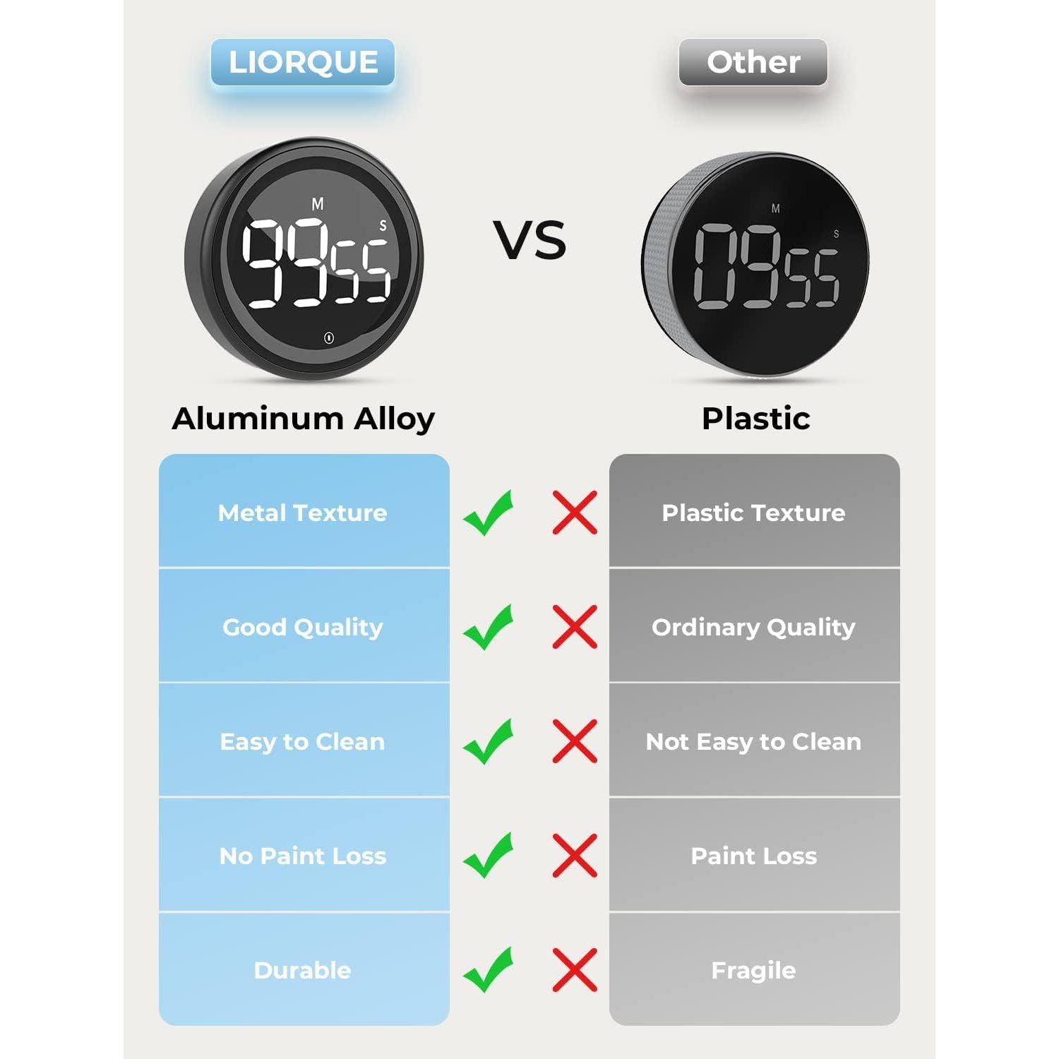 LIORQUE Digital Kitchen Timer, Magnetic Countdown Countup Timer with Large LED Display, 2 Brightness Levels, 3 Volume Levels, Productivity Timers for Classroom Cooking Fitness