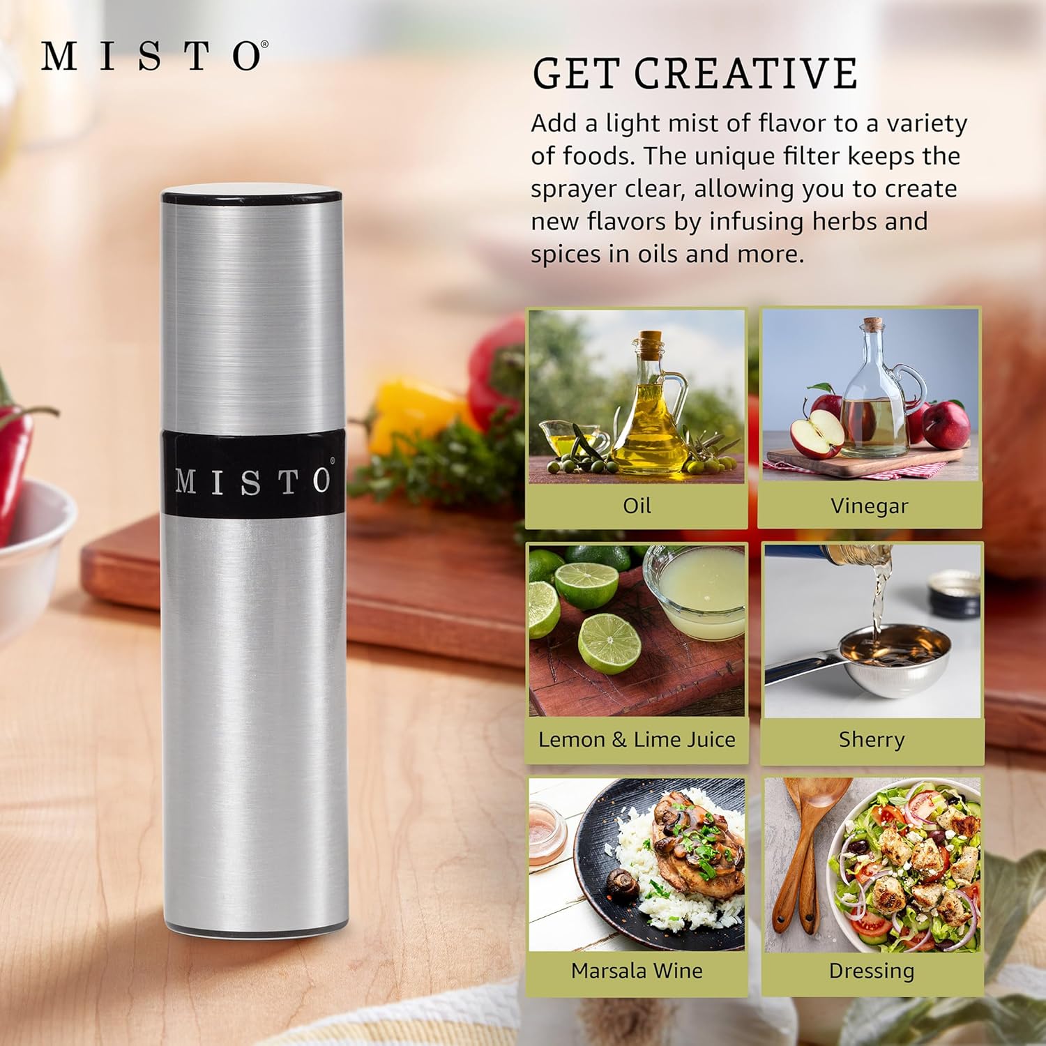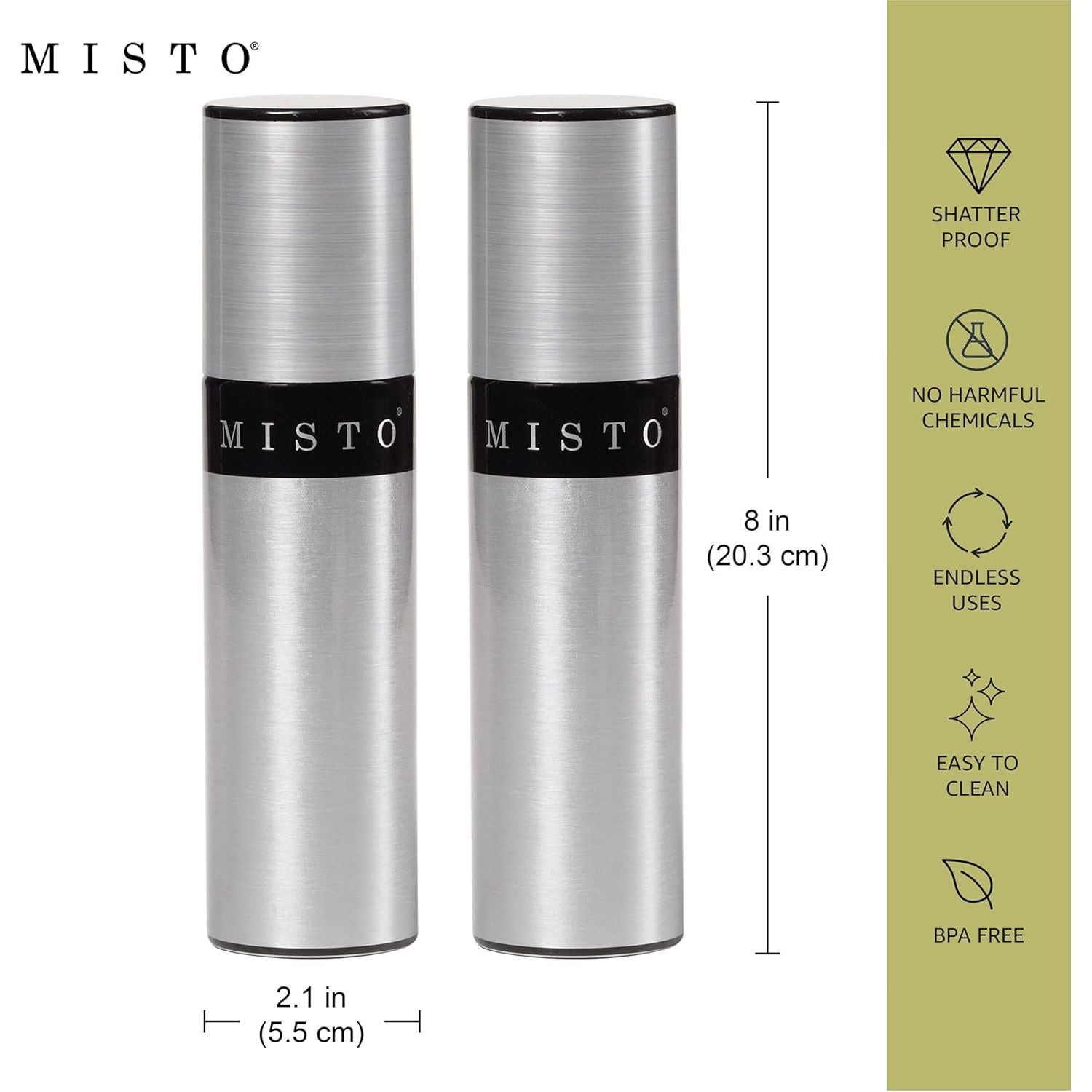 - Misto Aluminum Oil Sprayer, Set of 2, Versatile Refillable Aerosol Sprayers for Olive Oil, Vinegar, Lemon Juice, Dressings, and More, Ideal for Cooking, BBQ, and Air Fryers