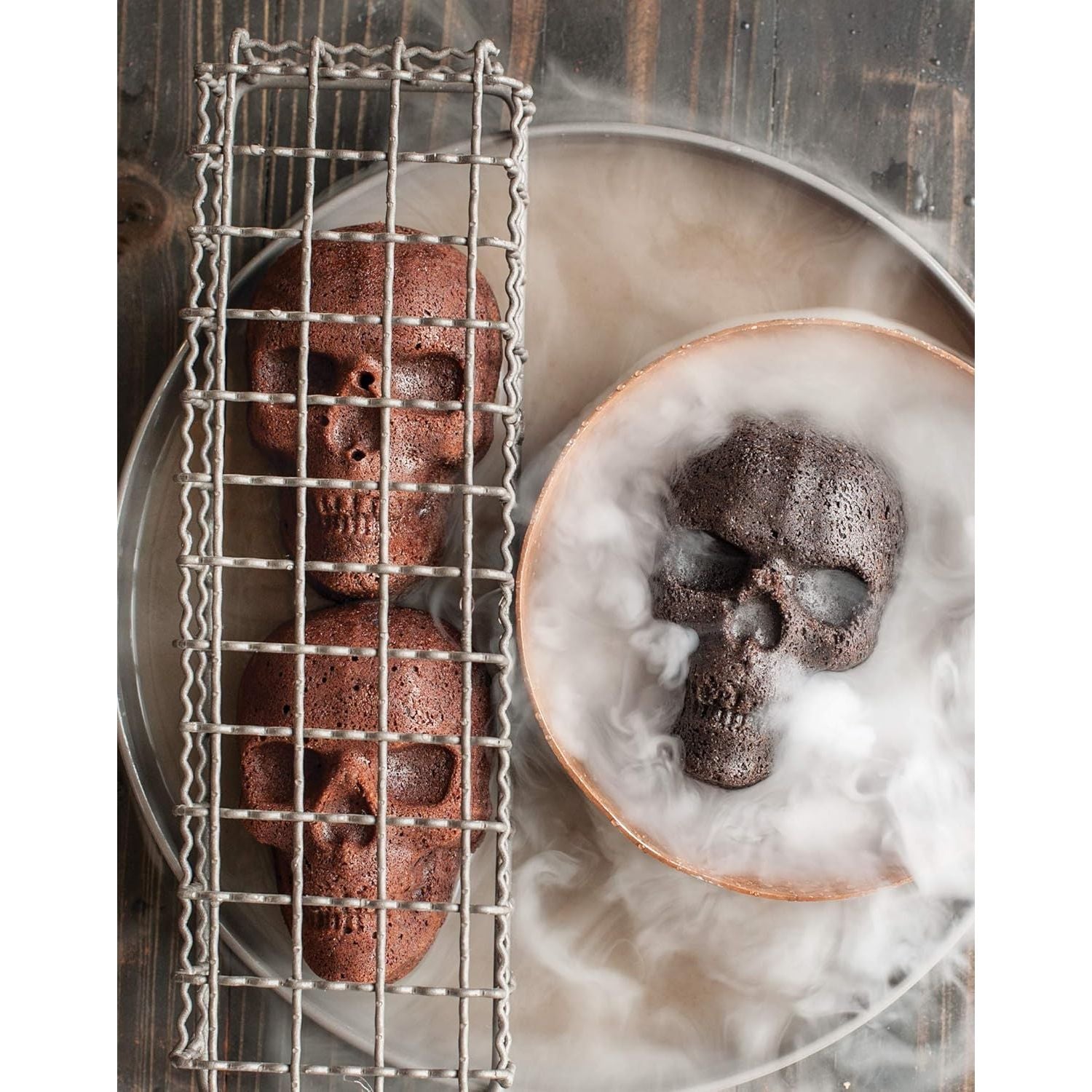 - Little skull shaped cakes will add some ghoulish delight to your Halloween table. With a nonstick interior that ensures effortless release and cleanup.
