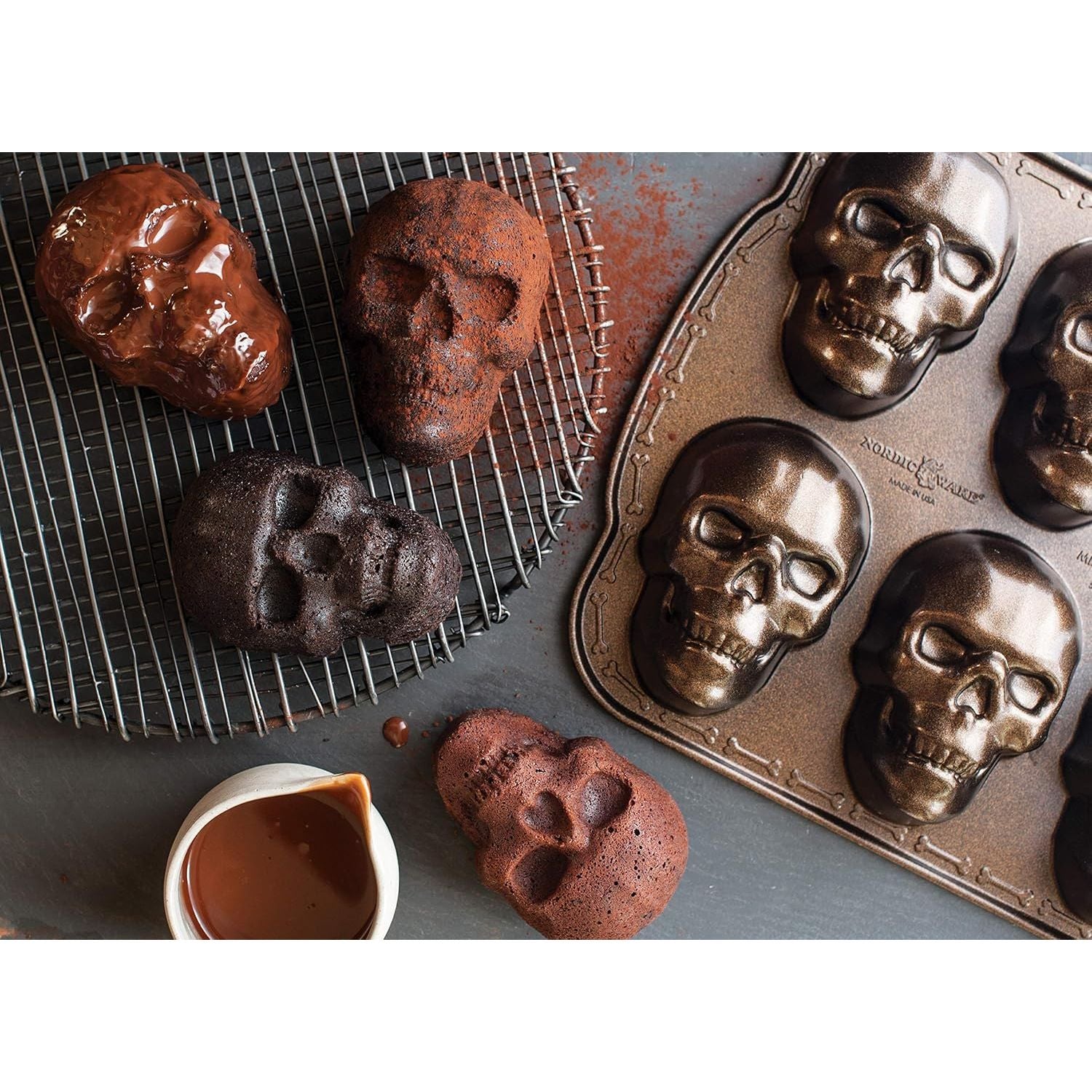 - Nordic Ware Halloween Bakeware, Haunted Skull Cakelet Pan, Bronze
