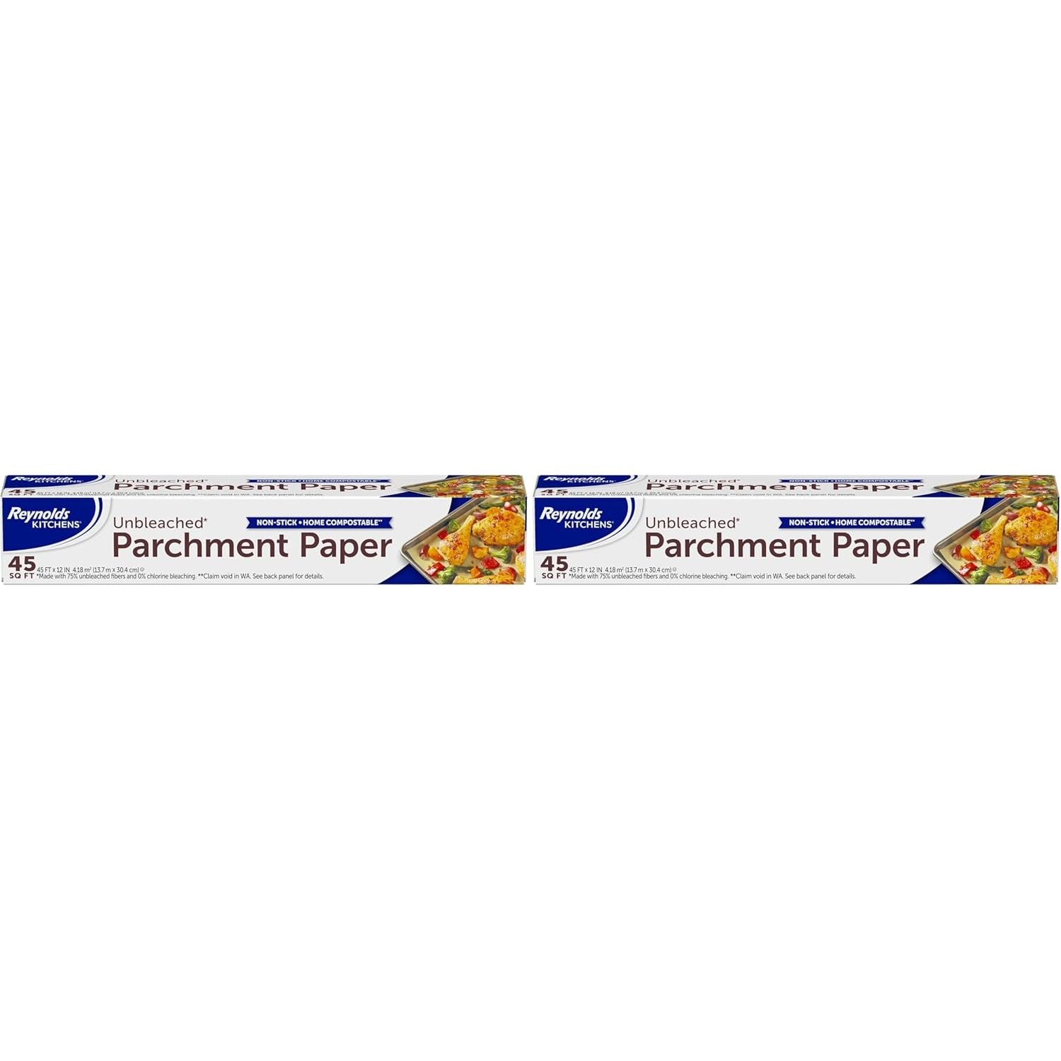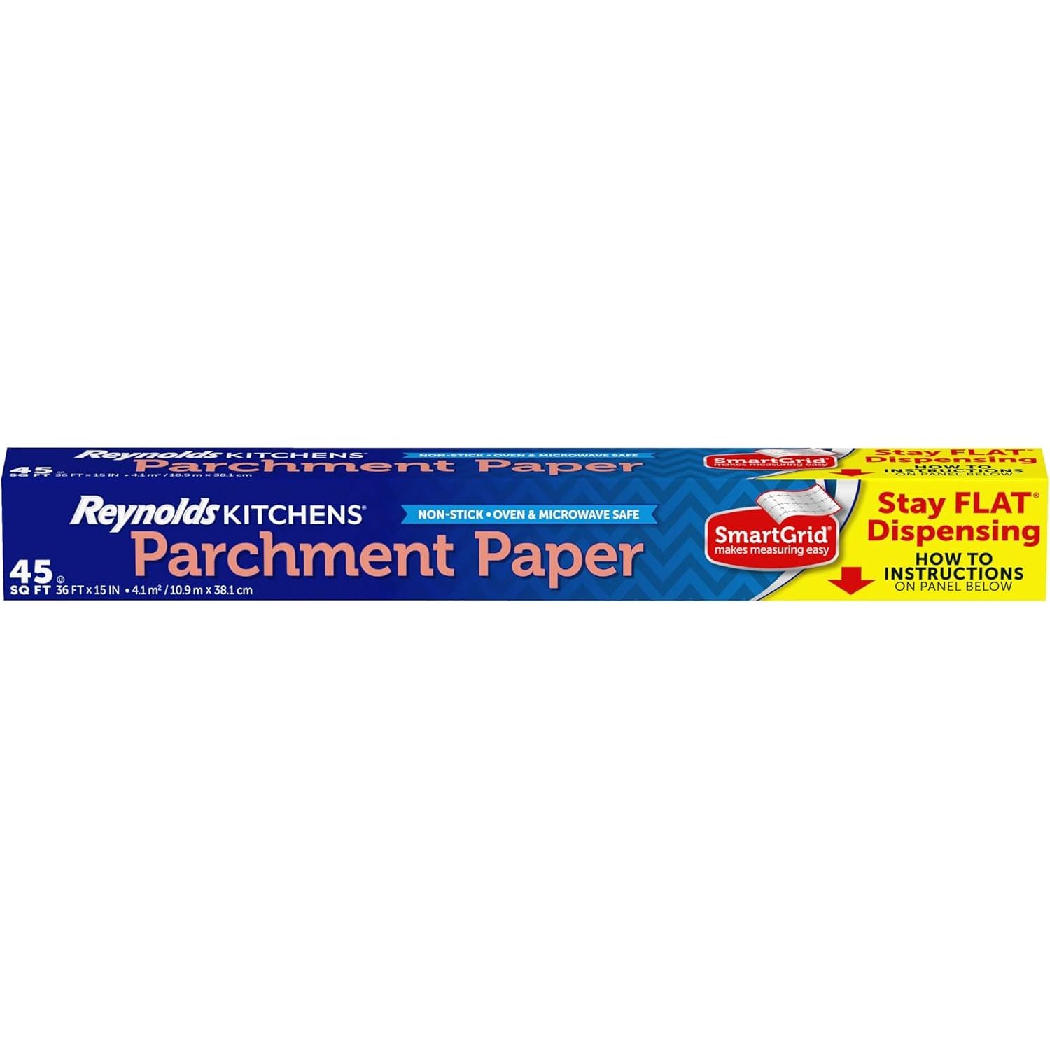 - Reynolds Kitchens Unbleached Parchment Paper Roll, Non Stick Parchment Paper for Cooking and Baking, Oven Safe up to 425 Degrees, Chlorine-Free, 45 Feet x 12 Inches, 45 Total Sq. Ft.