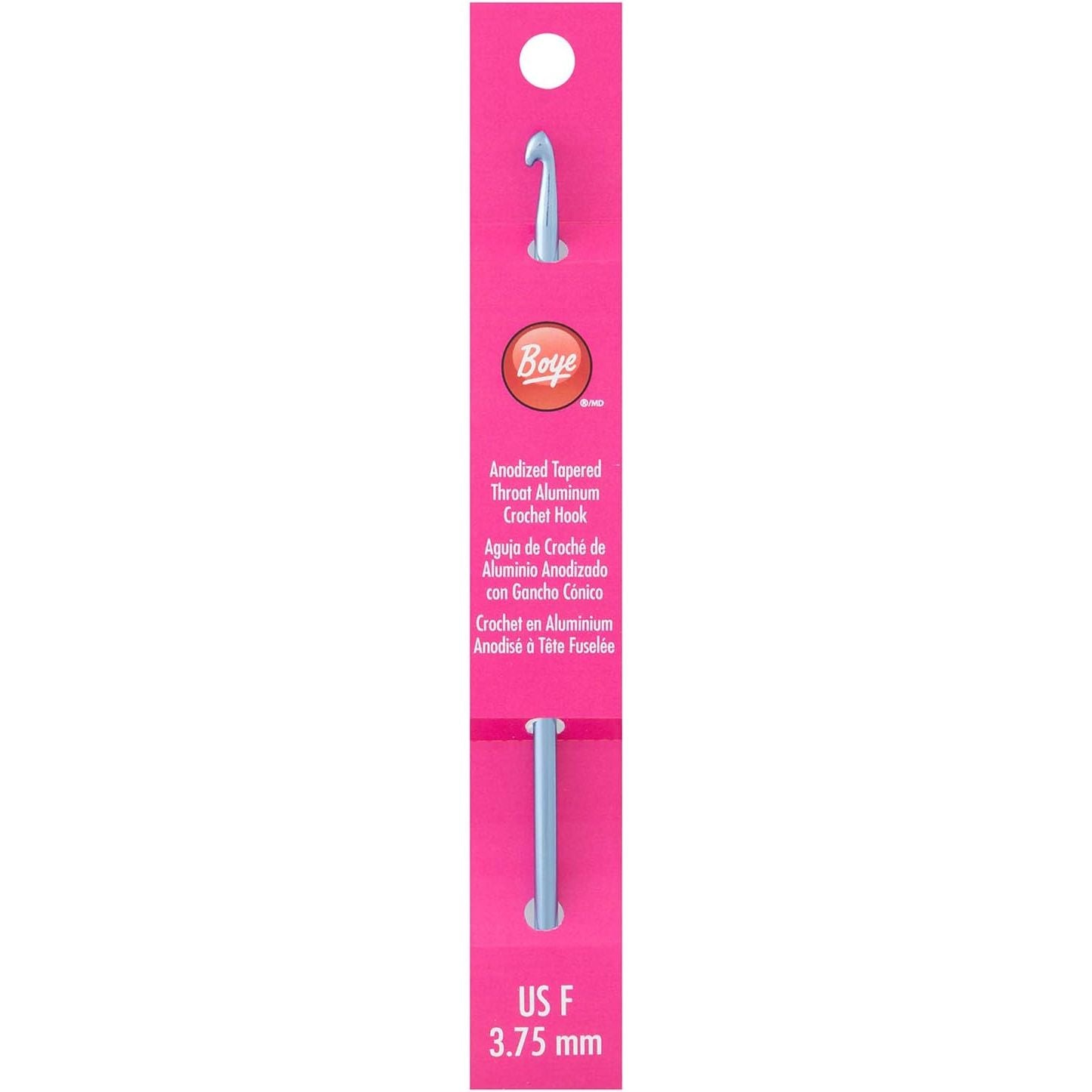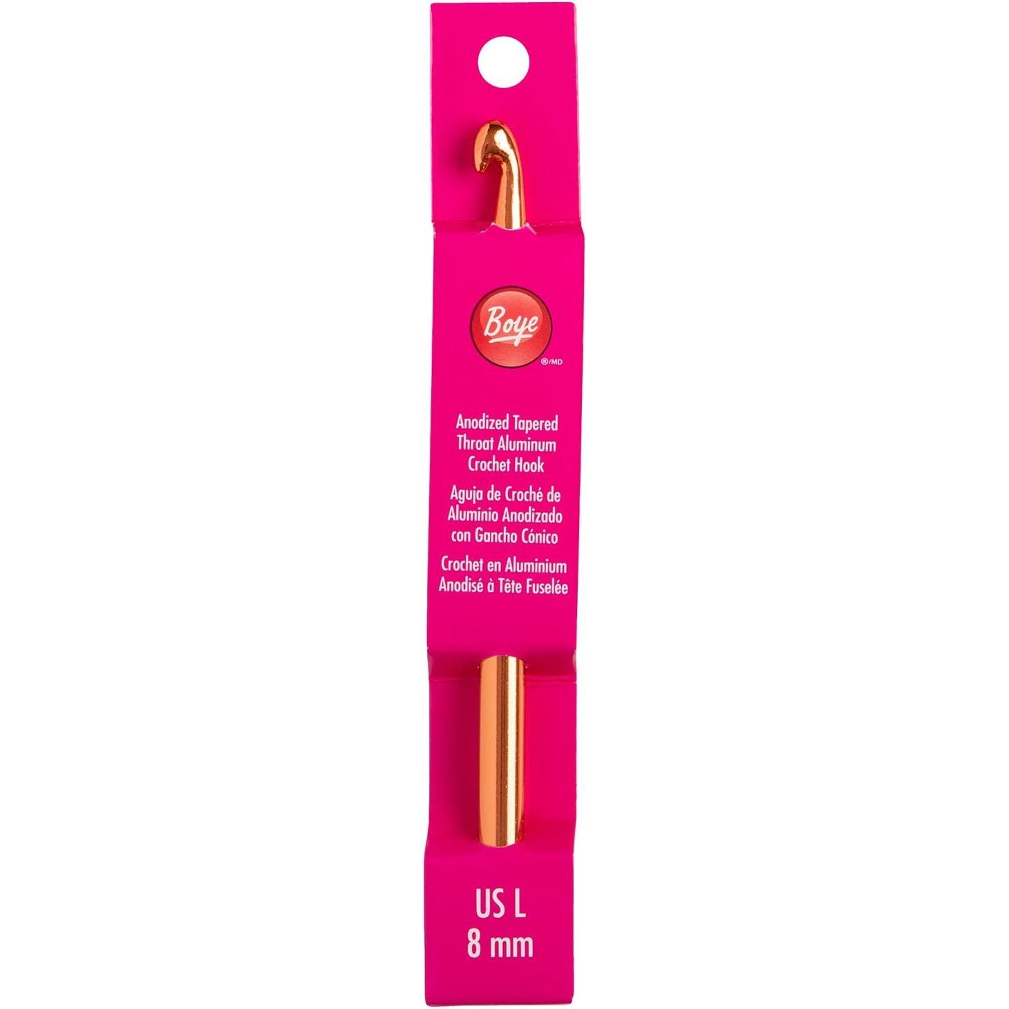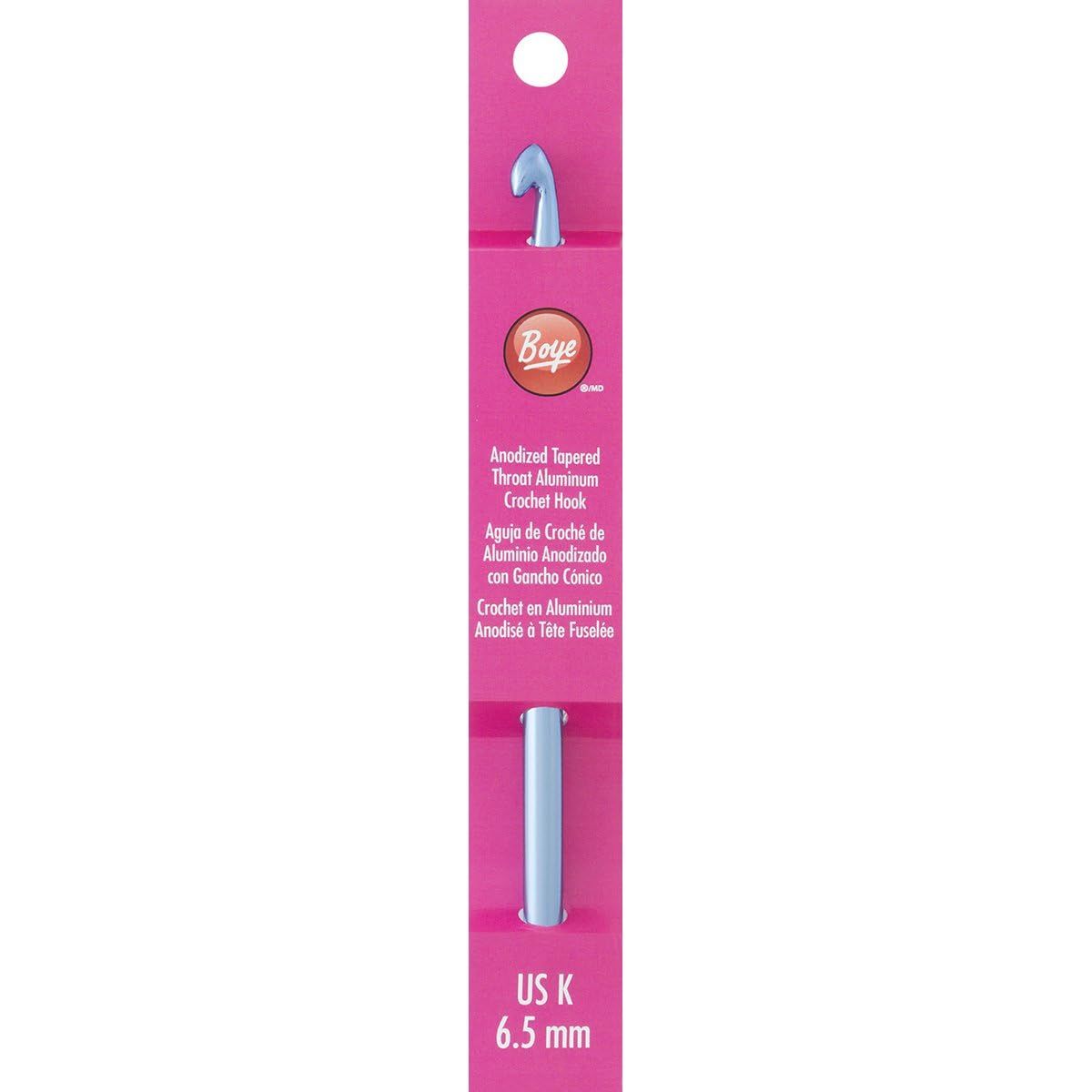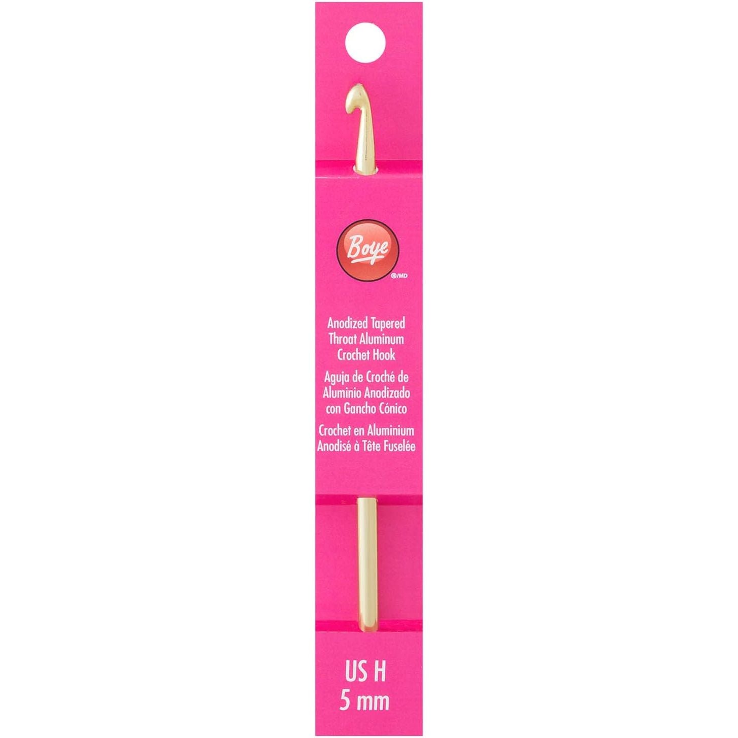 Not just a must-have tool for all of your crochet projects, Boye crochet hooks are also a handy accessory for creating hairpin lace, picking up dropped knitting stitches, threading beads onto string, and more! Made from smooth anodized aluminum, this hook has a smooth, tapered throat and is designed to seamlessly glide over yarn and other fabrics without catching or snagging. Perfect for any skill level crocheters from beginners to experts, metal hooks provide a more comfortable, durable, and versatile option compared to plastic. Package comes with (1) hook that is 6" long and size I-9 (5.25mm). Best suited for medium weight yarns and worsted yarns.