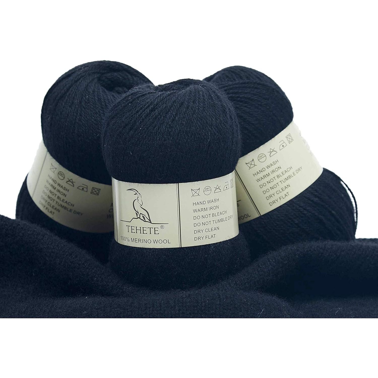- TEHETE 100% Merino Wool Yarn for Knitting 3-Ply Luxury Warm Soft Lightweight Crochet Yarn (Black)