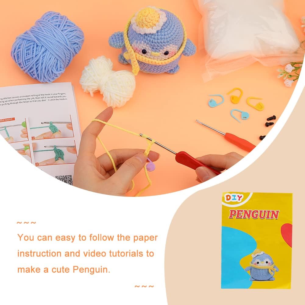 - CROCHET KIT FOR BEGINNER: Our crochet kit comes with 3 colors of yarn, 1 x double-ended crochet hook (random color), 5 x stitch markers(random color), 1 x instructions, 1 x big eye blunt needle, 4 x eyes, 25g polyester fiber, and 1 x custom bags, which is easy to carry and DIY creation anytime, anywhere.