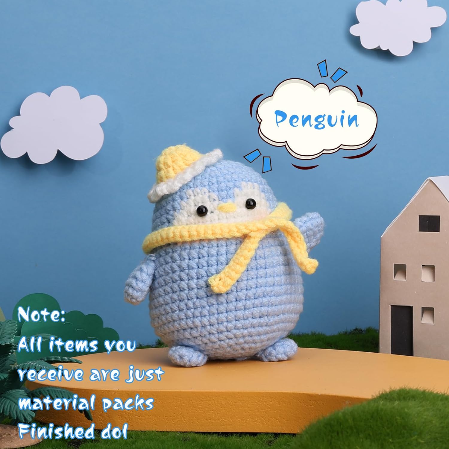 - CUTE ANIMALS TO CHOOSE FROM: 5 PCS Cute animals, knitting kit with animal figures, such as hedgehog, elephant, dinosaur, penguin, rabbits, etc for you to choose from, Knitting these cute animals with yarn is a joy.