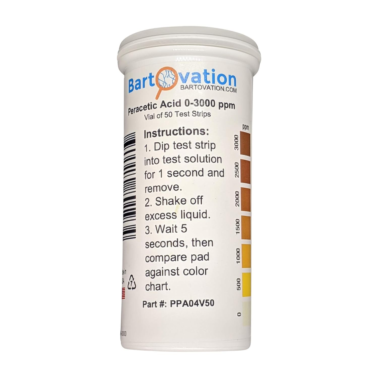 This Extra High-Level Peracetic Acid Test strip was designed for testing for high levels of Peracetic acid (0 - 3000 ppm). this range gives food processing facilities the ability to Test for compliance of these solutions with a simple 20 second Test procedure. This product was developed to service the needs of many of our food processing customers who already rely on our other highly economical PAA test strips, such as our 0-50 ppm, 0-160 ppm, and 0-500 ppm test strips.