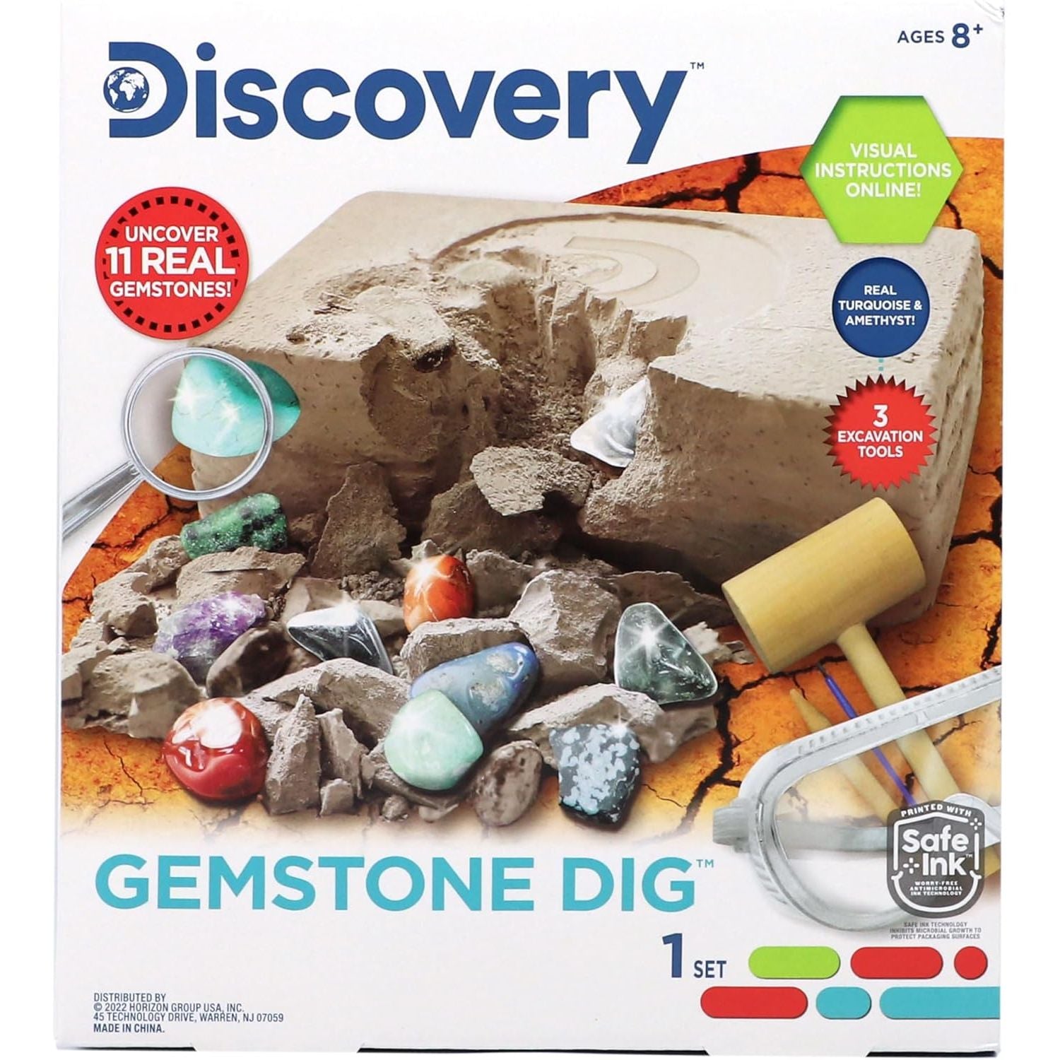 - Discovery Kids Gemstone Dig Stem Science Kit by Horizon Group Usa, Excavate, Dig & Reveal 11 Real Gemstones, Includes Goggles, Excavation Tools, Streak Plate, Magnifying Glass & More