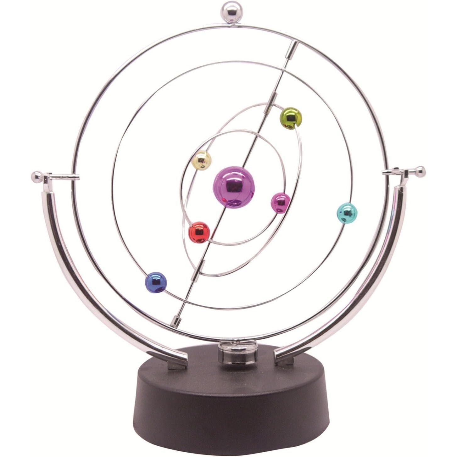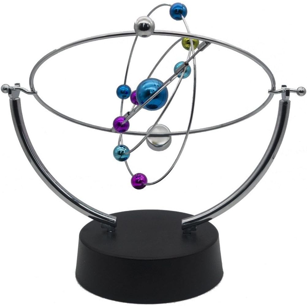 This is the perfect desk toy to impress Colleagues and clients alike! Perpetual Motion Desktop Toy is perfect for your outer space themed office or room decor. It is also great for those enthusiastic about science or to demonstrate the laws of physics in science classrooms. A simple spin of the top of the base sets the galaxy in motion.A top seller in the space museum stores and a cool gift for the science physics enthusiast. Requires one 9V battery to operate. Battery not included.