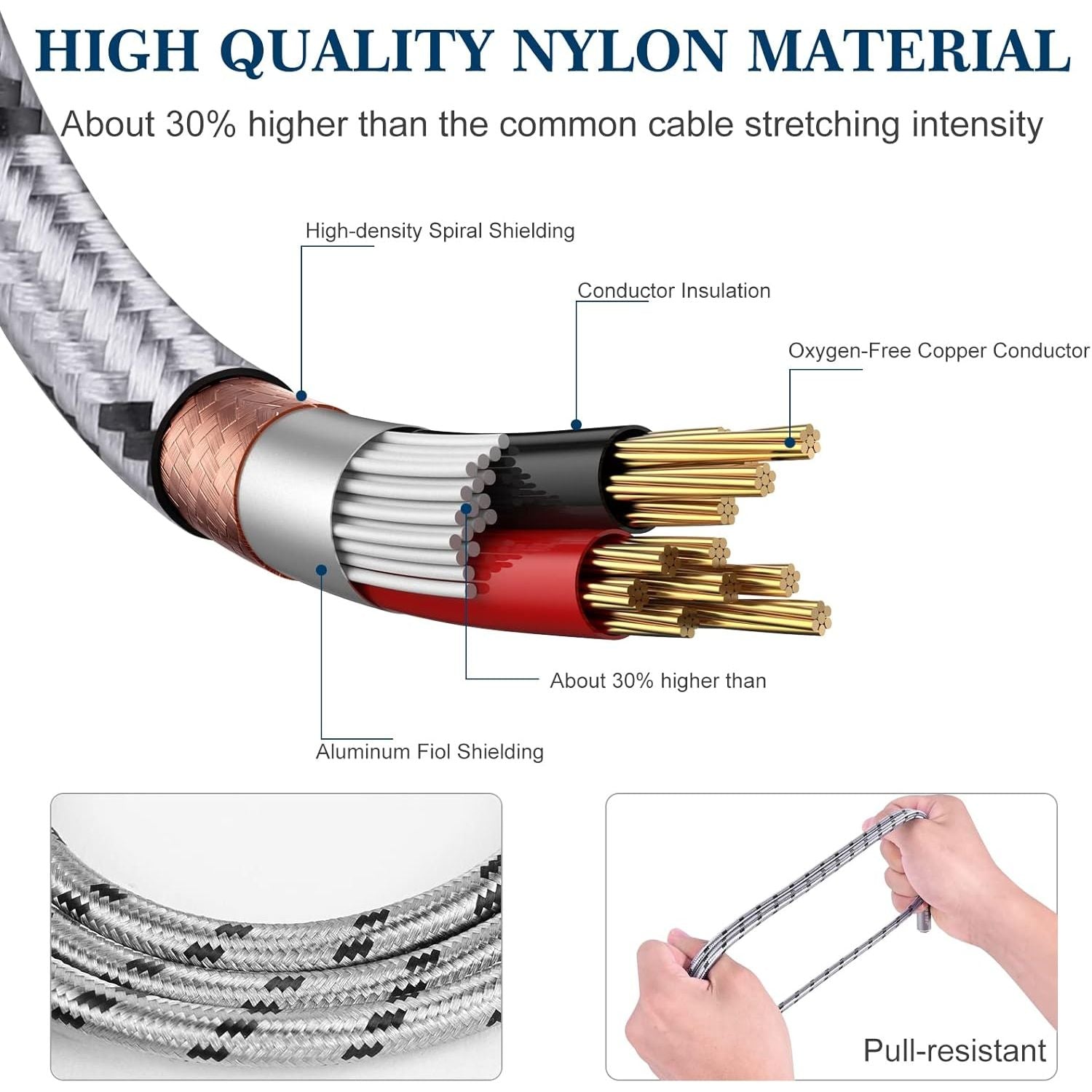 - EXCELLENT SOUND : 20 AWG 4N Oxygen Free Copper with shielding, Foil shielding and metal braid shield eliminate interference, deliver pristine sound, noise shielding, No hum, no noise, crystal clear music. High quality noise free performance.