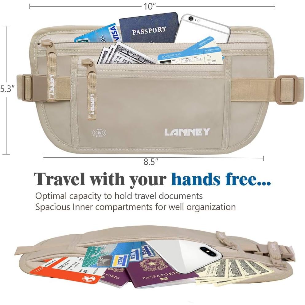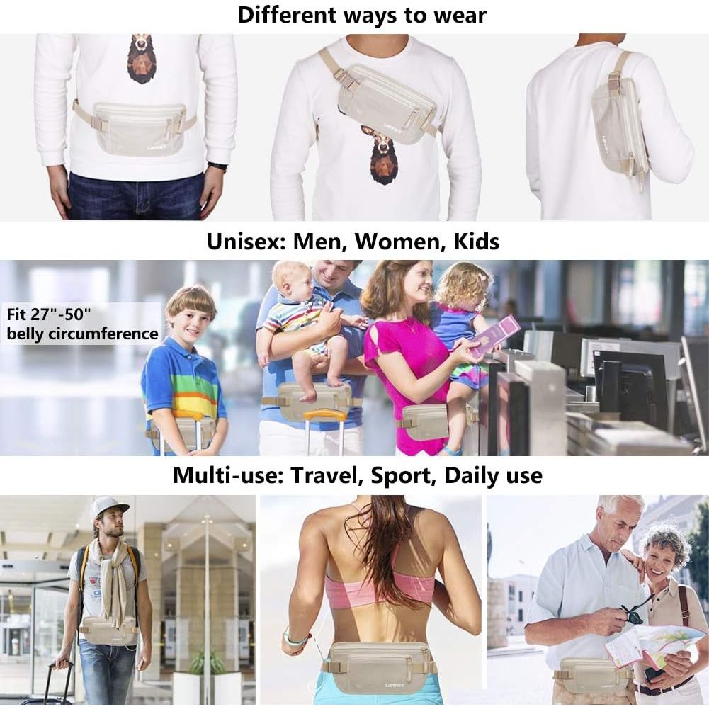 - Travel Money Belt Hidden Waist Stash Wallet RFID Blocking Anti-Theft Passport Holder for Men Women, Cream