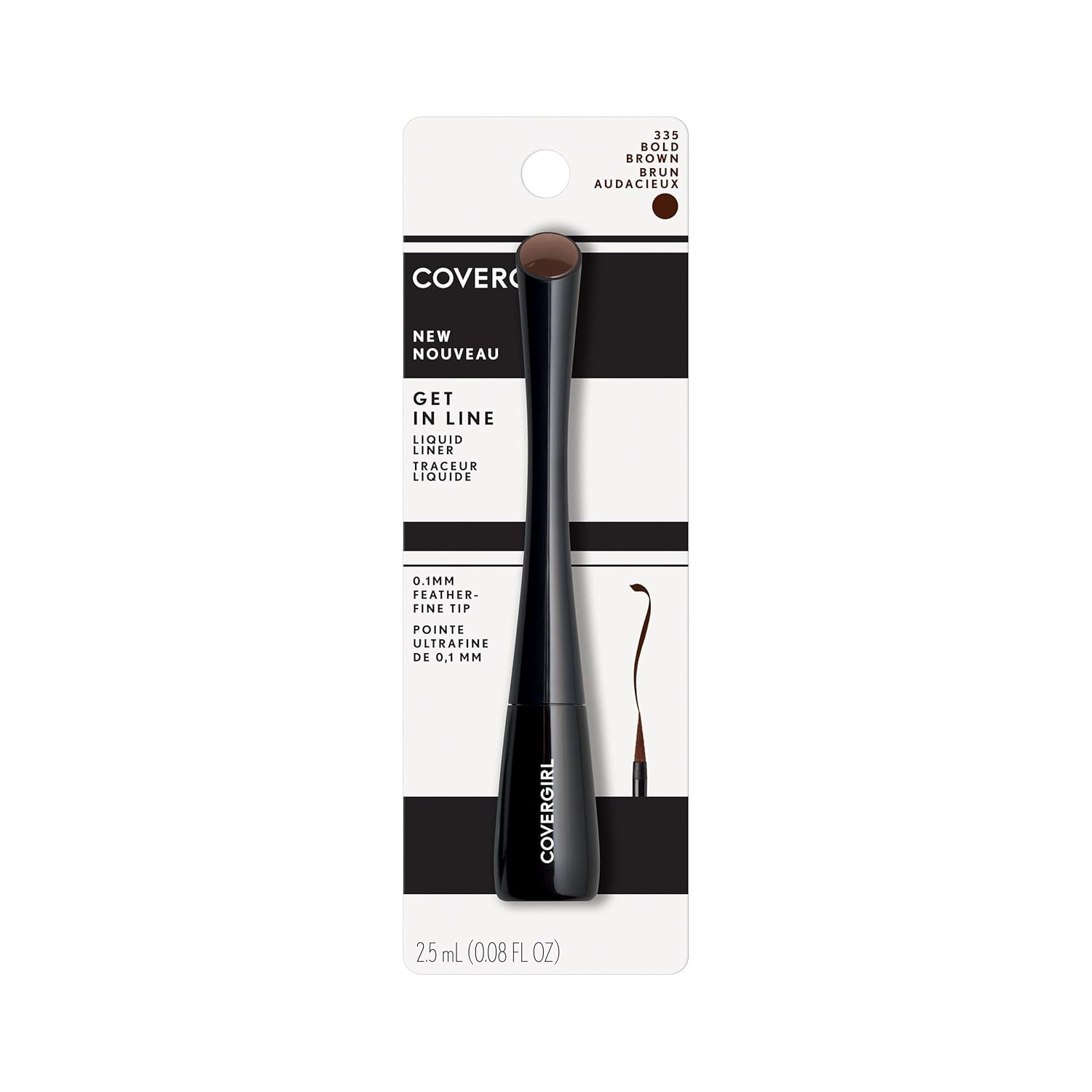 COVERGIRL Get In Line Liquid Eyeliner comes with a contour-grip handle combined with an ultra fine 0.1 mm tip to help you perfect the ultimate wing. This long-lasting, quick-dry liquid eyeliner is sure to be your new favorite!