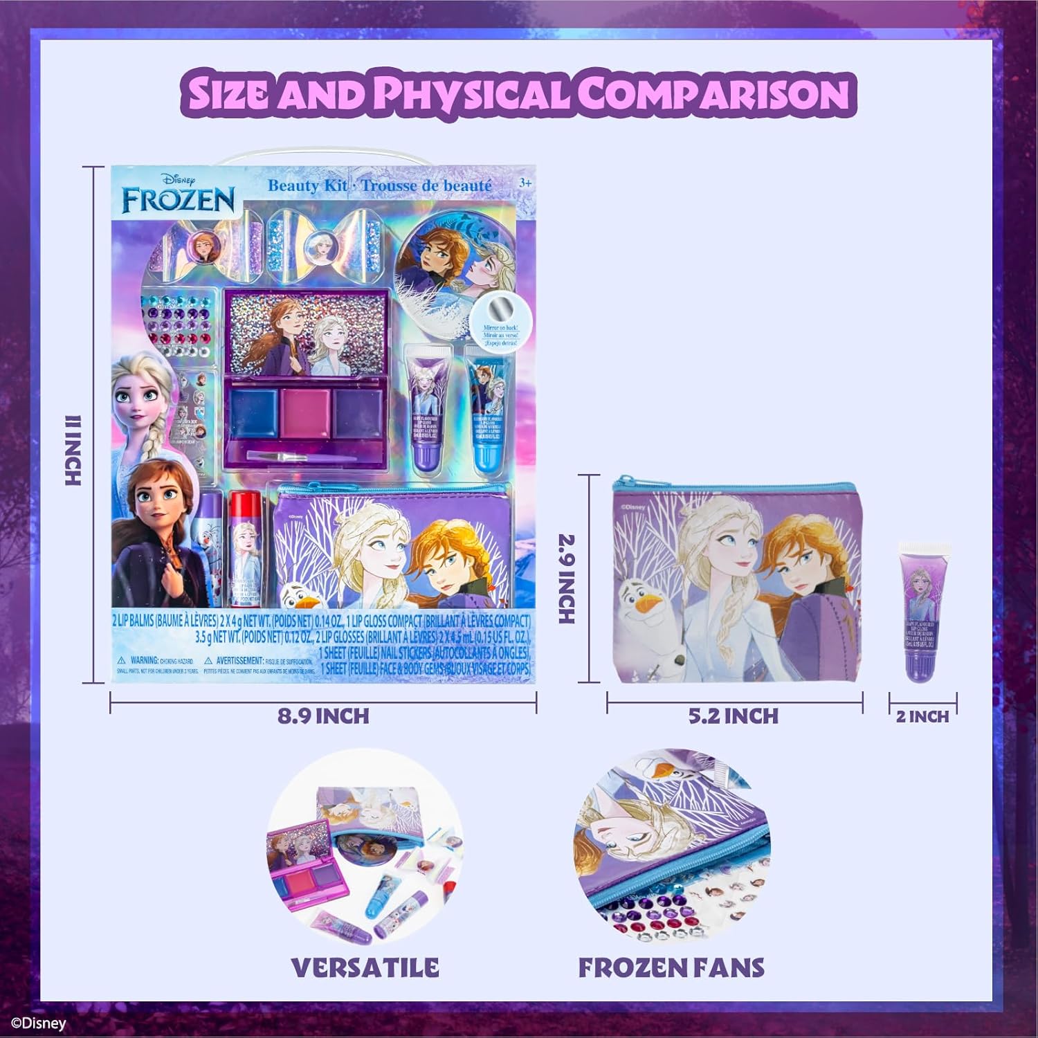 Disney Frozen - Townley Girl Super Sparkly Cosmetic Beauty Makeup Set For Girls with Clips, Lip Gloss, Nail Stickers, Lip Balm, Nail Gems and Mirror For Parties, Sleepovers & Makeovers
