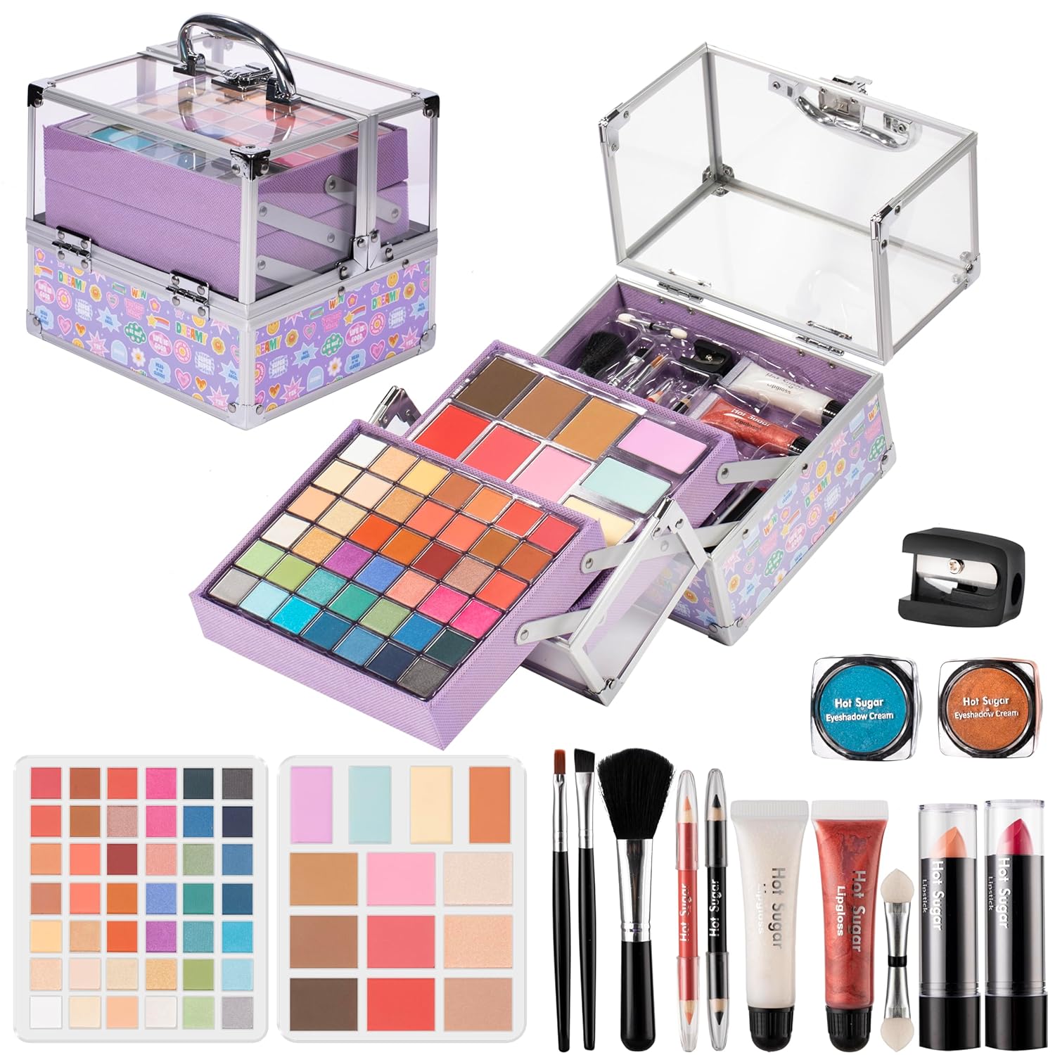 - What You Get: The makeup set includes 42pcs eyeshadow, 4pcs concealer, 3pcs highlighter, 3pcs blush, 3pcs contour, 2pcs lipstick, 2pcs lip gloss, 2pcs eyeshadow cream, 1pc lip pencil, 1pc eye pencil, 1pc sharpener, 4pcs brush and a cute makeup box.