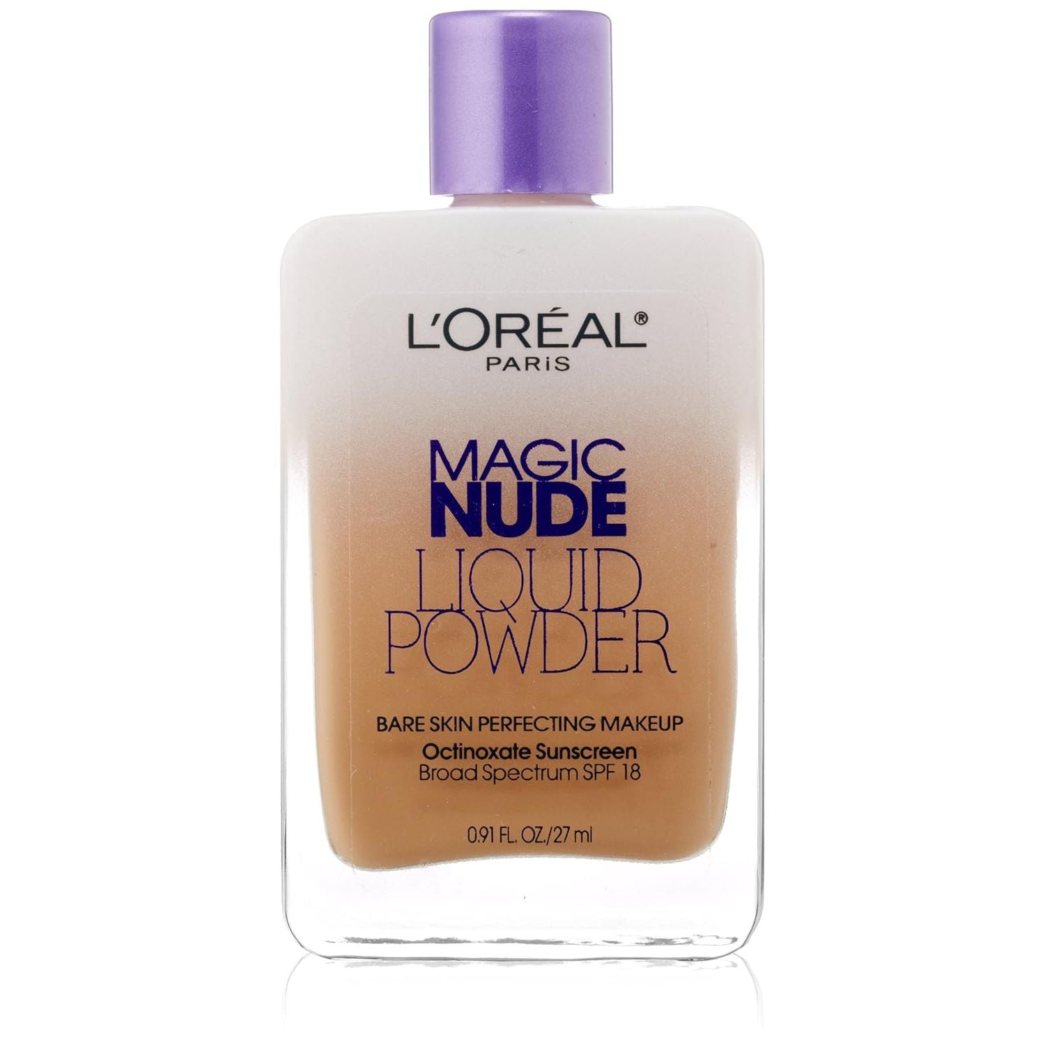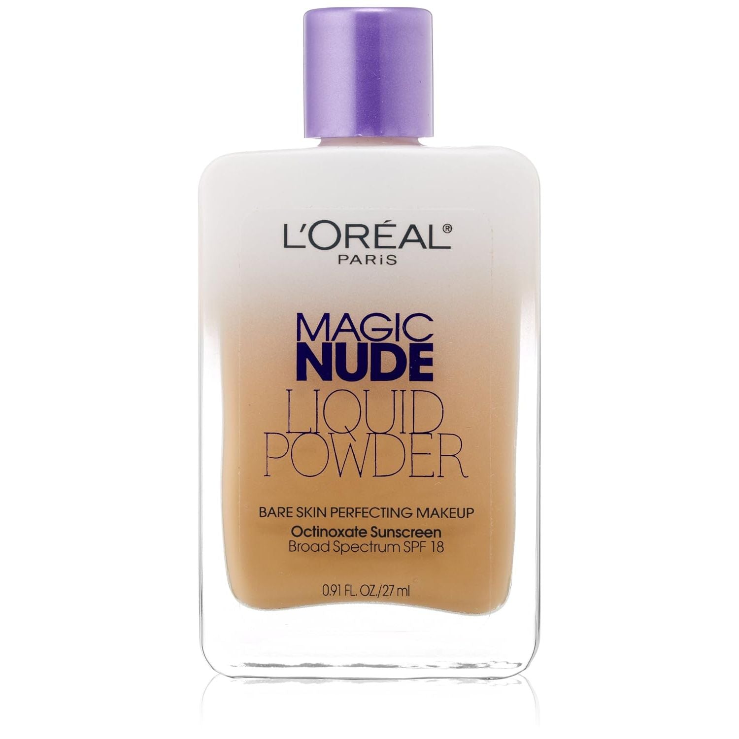 Get the ultimate un-makeup look with Magic Nude Liquid Powder Bare Skin Perfecting Makeup with SPF 18. Revolutionary liquid transforms on contact, leaving a soft powder like finish. This foundation is so amazingly lightweight it's like wearing no makeup at all! Just shake and apply – it’s magic!