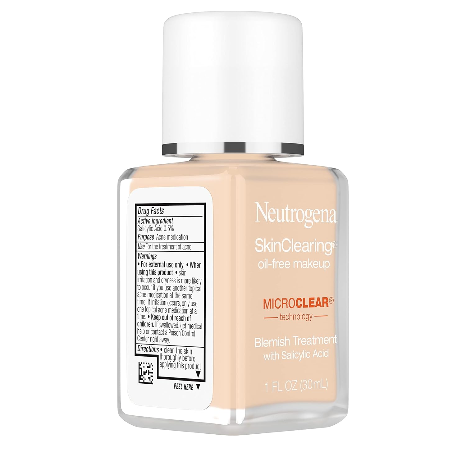 Product Description Create a natural, breathable look and feel with Neutrogena SkinClearing Oil-Free Acne Fighting Foundation Makeup. Formulated for acne-prone skin, it is the first and only liquid makeup foundation with MicroClear technology that not only treats blemishes, but also helps prevent emerging acne breakouts for clearer skin. MicroClear technology boosts the power of the .5% salicylic acid acne medicine by breaking through oil and unclogging pores for fast acne relief. Developed by dermatologists, this oil-free liquid face makeup formula controls shine and won't clog pores. It provides natural coverage for acne-prone skin and is hypoallergenic and non-comedogenic. This oil-free acne-fighting face makeup comes in a variety of shades and makes a great addition to a regular acne-prone skincare routine. Brand Story By Neutrogena Cosmetics