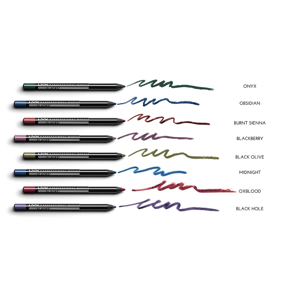 - Beyond Black Eyeliner: NYX Professional Makeup Faux Blacks Eyeliner are creamy eyeliner pencils with a deep toned hue; Go beyond basic black eyeliner and try a new twist on this enduring eyeliner favorite