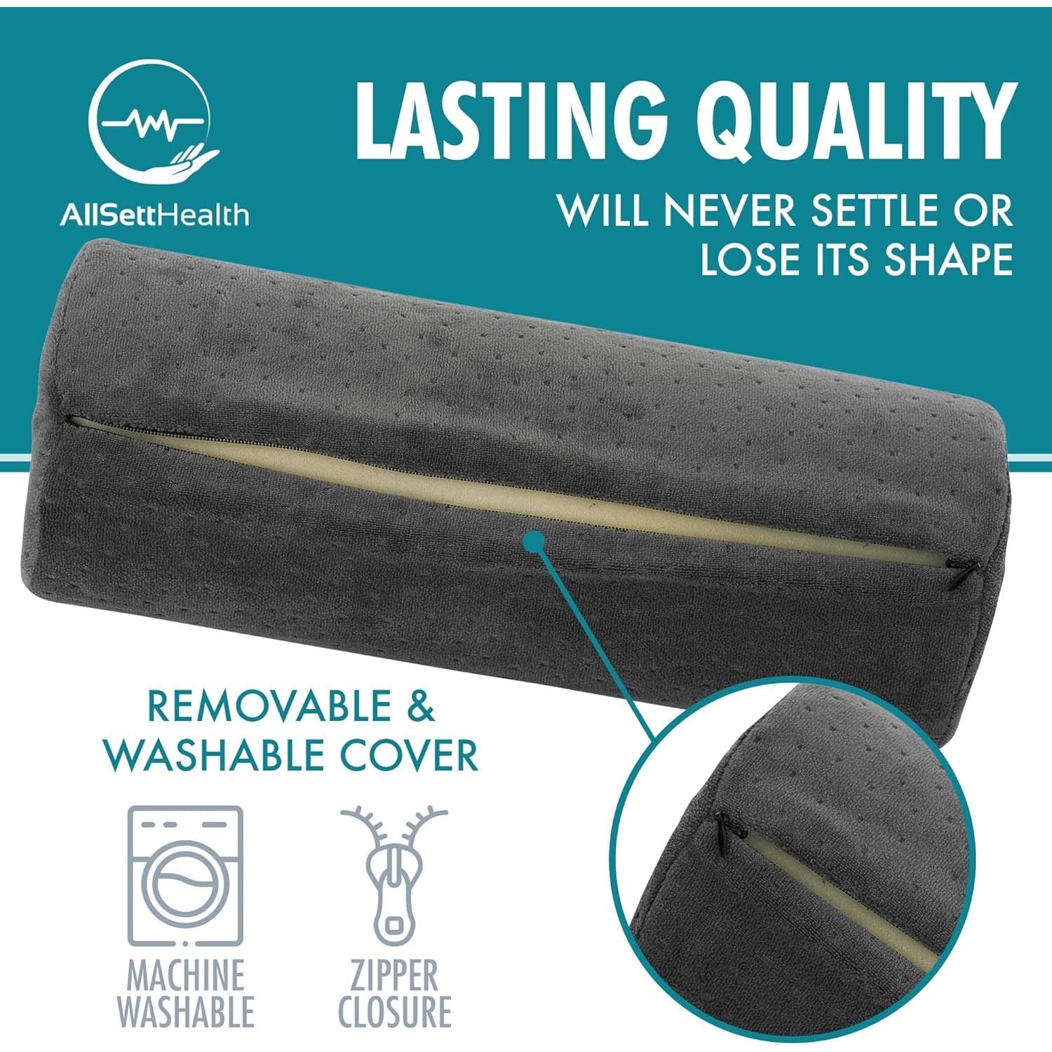 - AllSett Health Round Cervical Roll Cylinder Bolster Pillow with Removable Washable Cover, Ergonomically Designed for Head, Neck, Back, and Legs, Grey