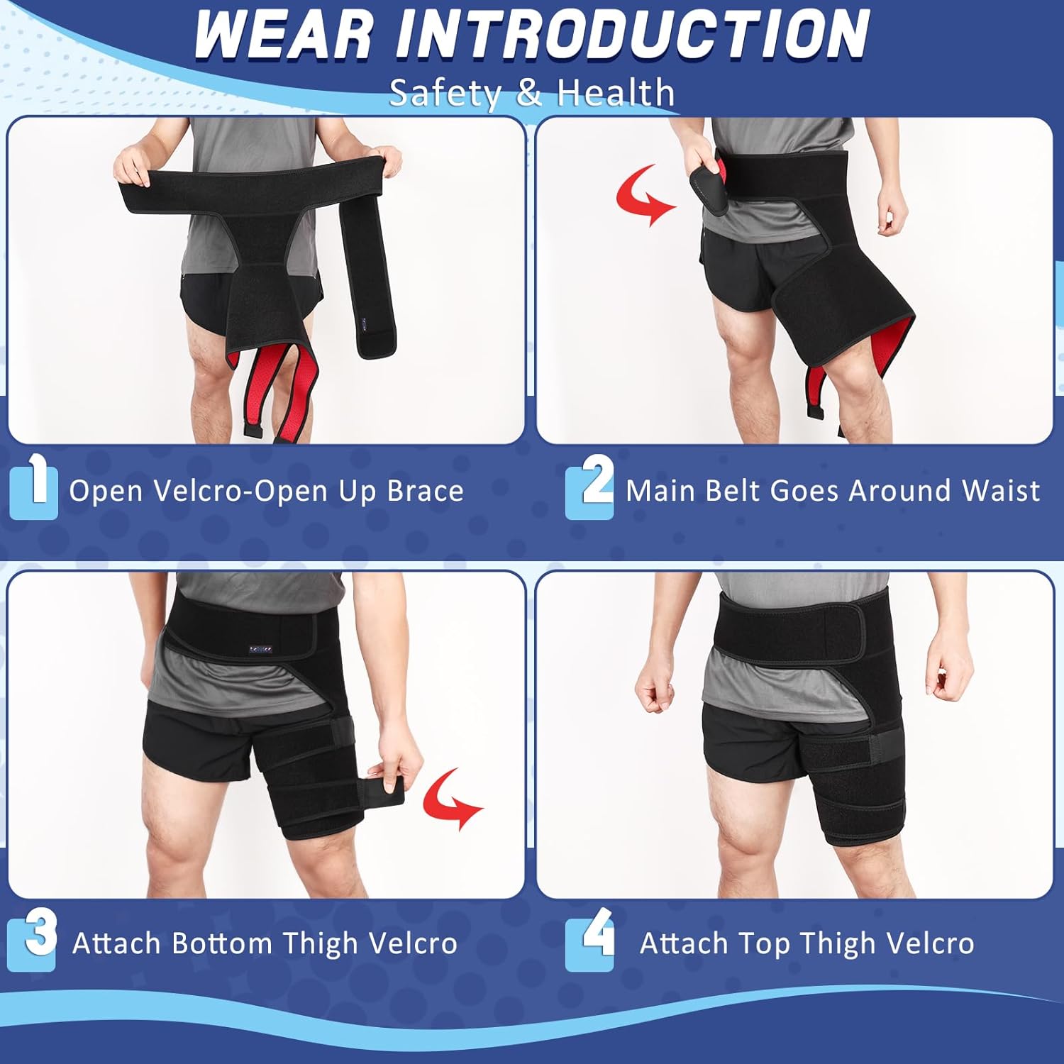 - beister Men and Women Adjustable Hip Groin Stabilizer and Hip Brace for Sciatica Pain Relief, Thigh Leg Compression Support Wrap Sleeve for, Hip Joint Pain, Quad Hamstring Joints Recovery