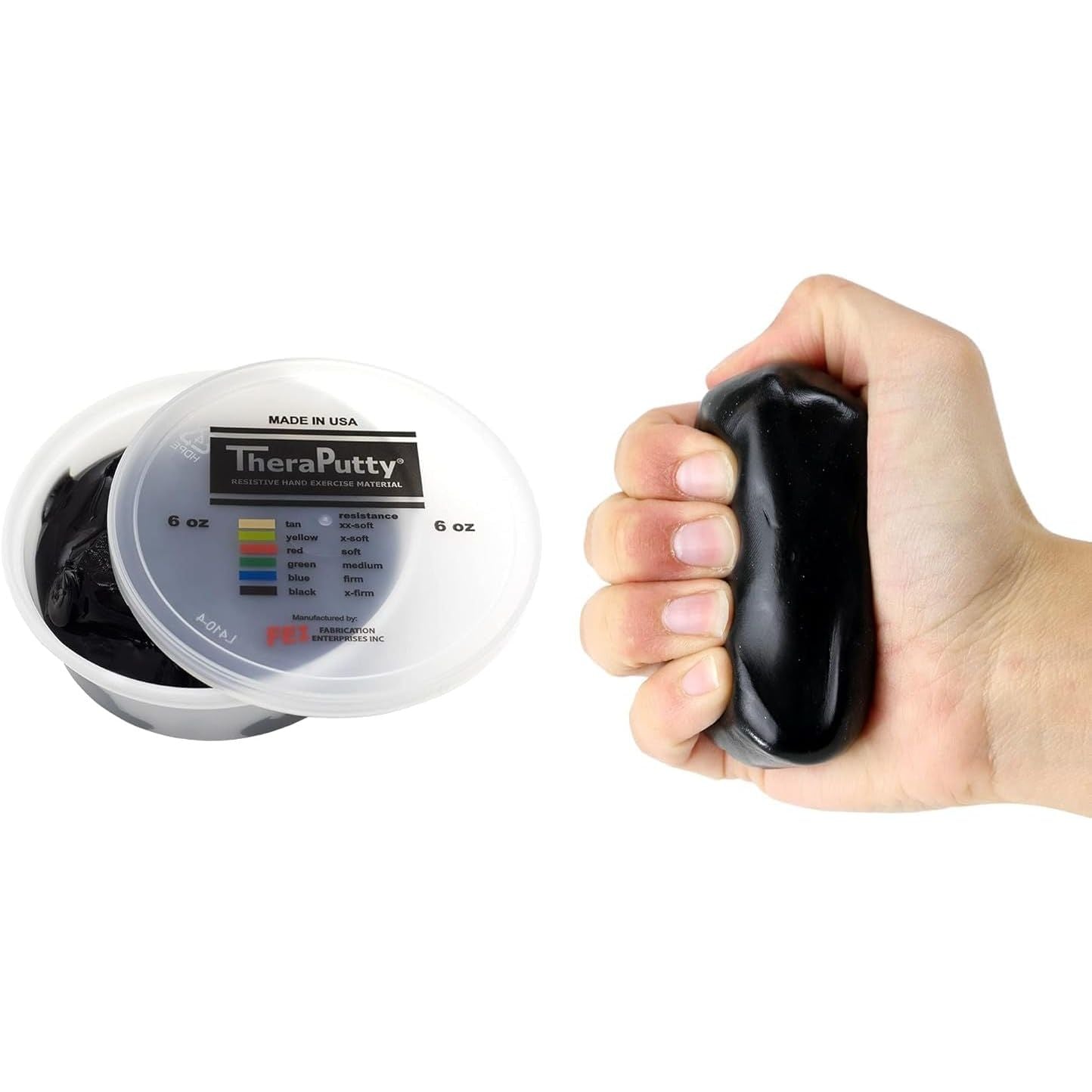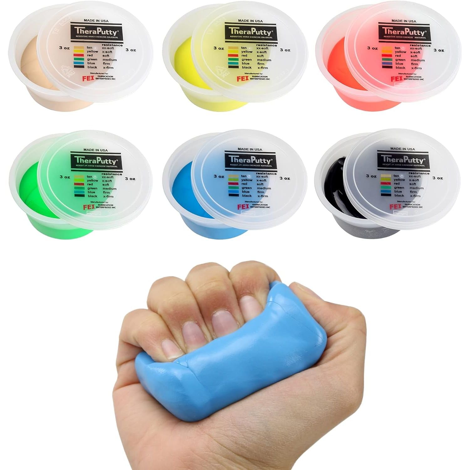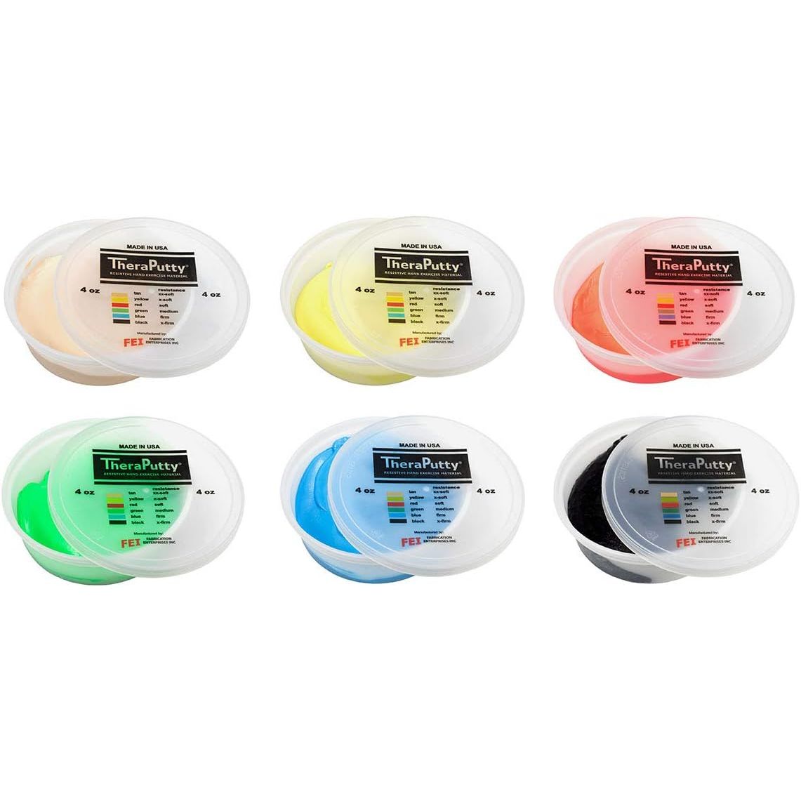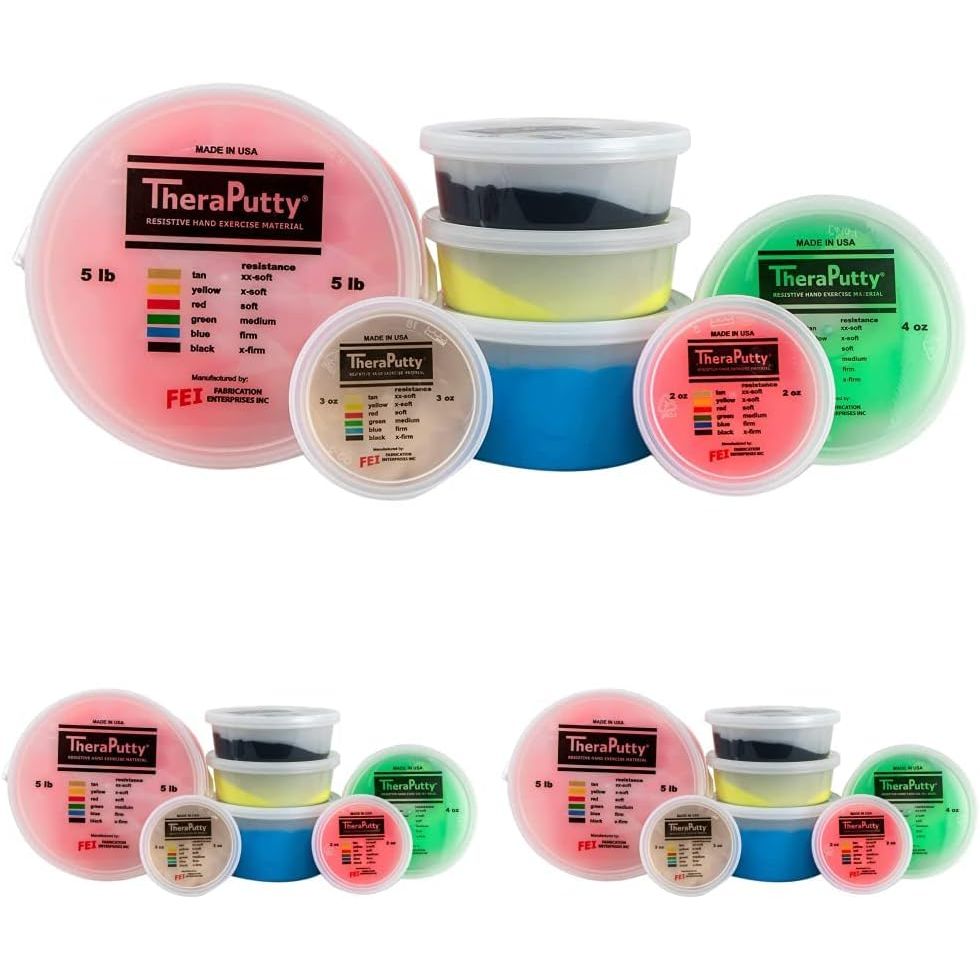 - SIX DIFFERENT FIRMNESS LEVELS - Regardless of your hand strength, there is a TheraPutty option for you! TheraPutty is available in 6 color-coded firmness levels ranging from xx-soft (tan) to x-firm (black).