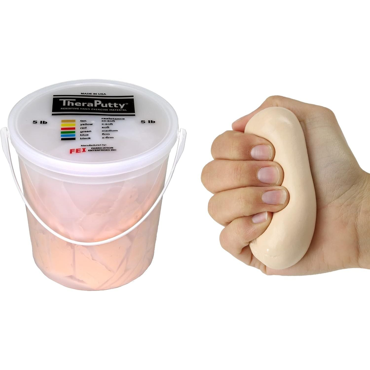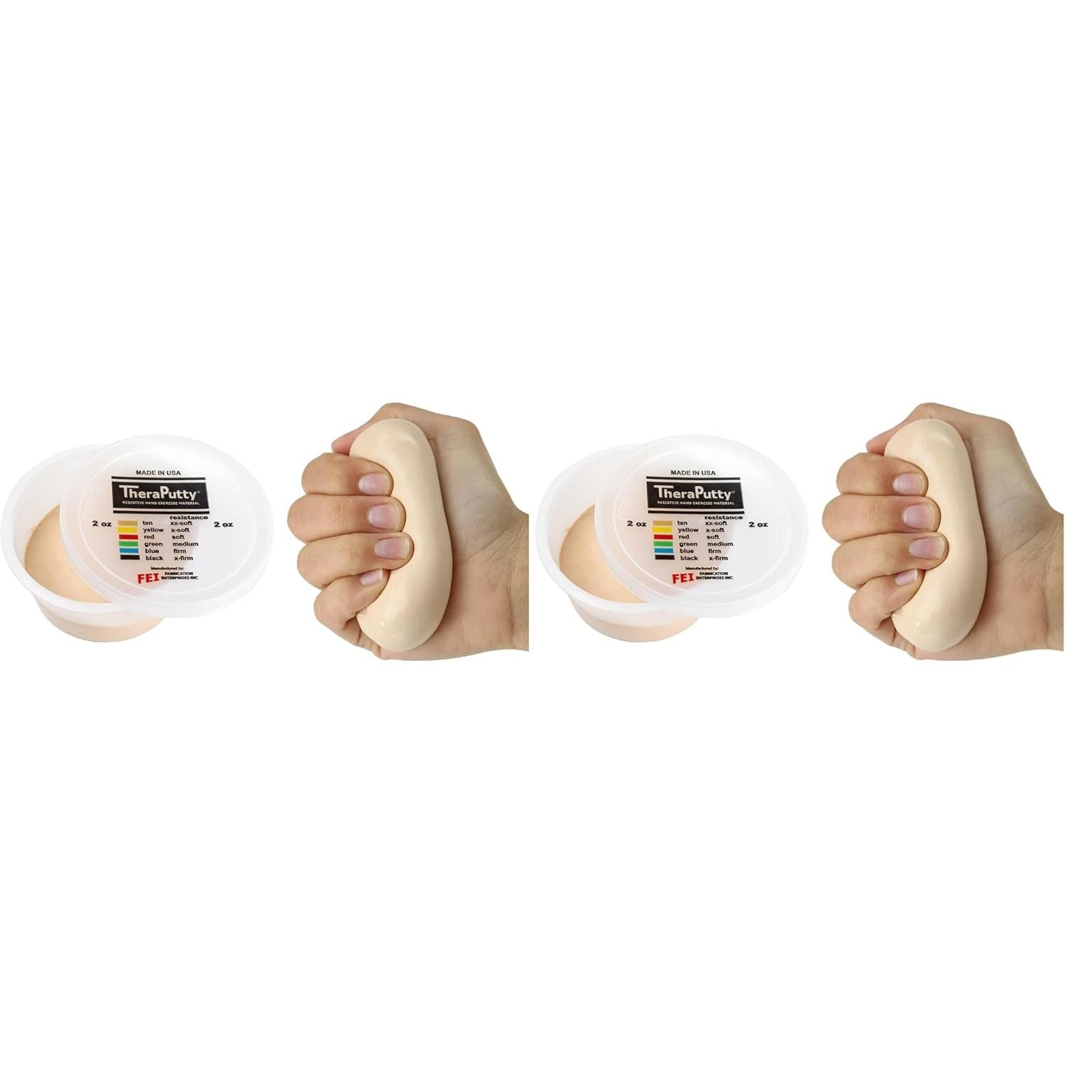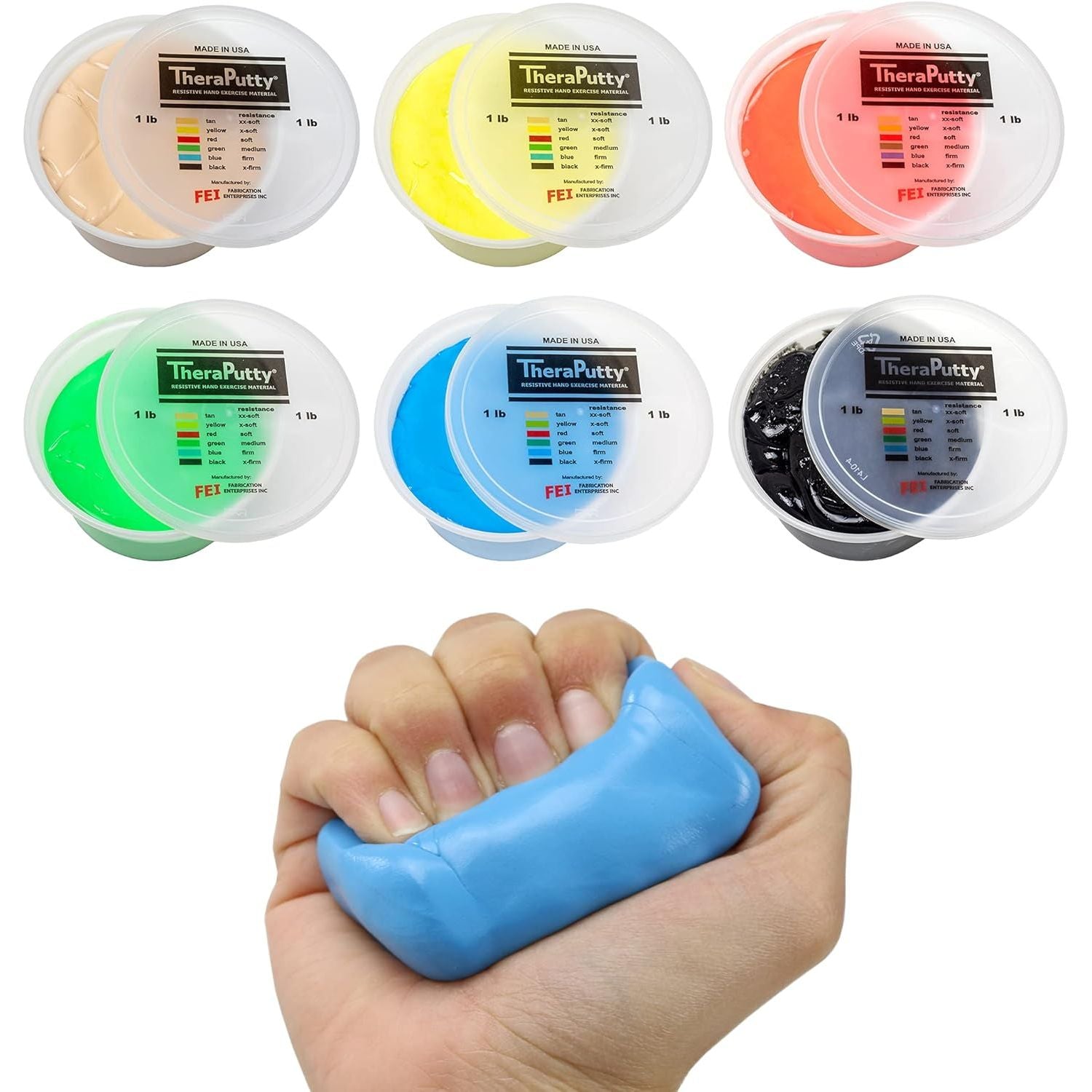 - SIX DIFFERENT FIRMNESS LEVELS - Regardless of your hand strength, there is a TheraPutty option for you! TheraPutty is available in 6 color-coded firmness levels ranging from xx-soft (tan) to x-firm (black).